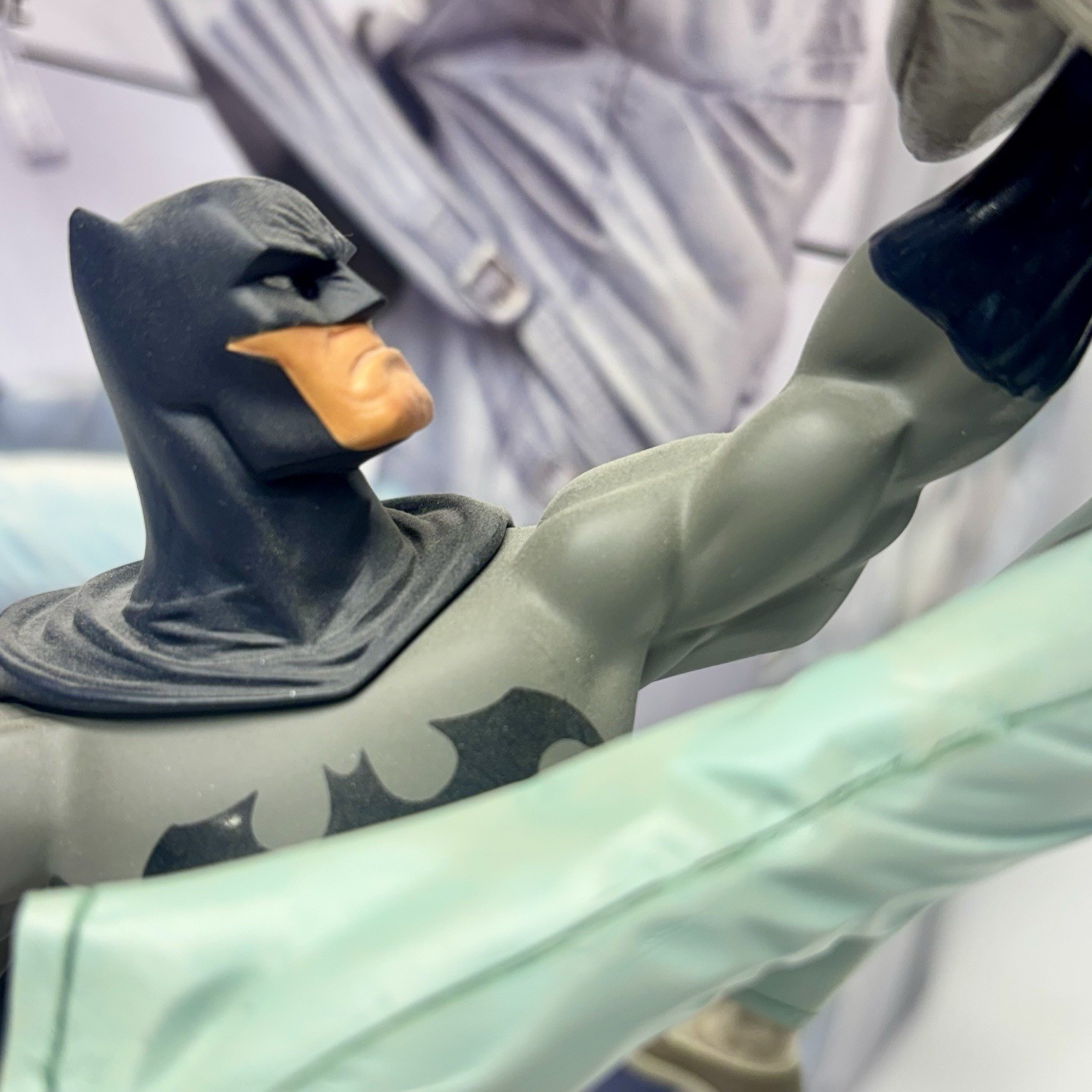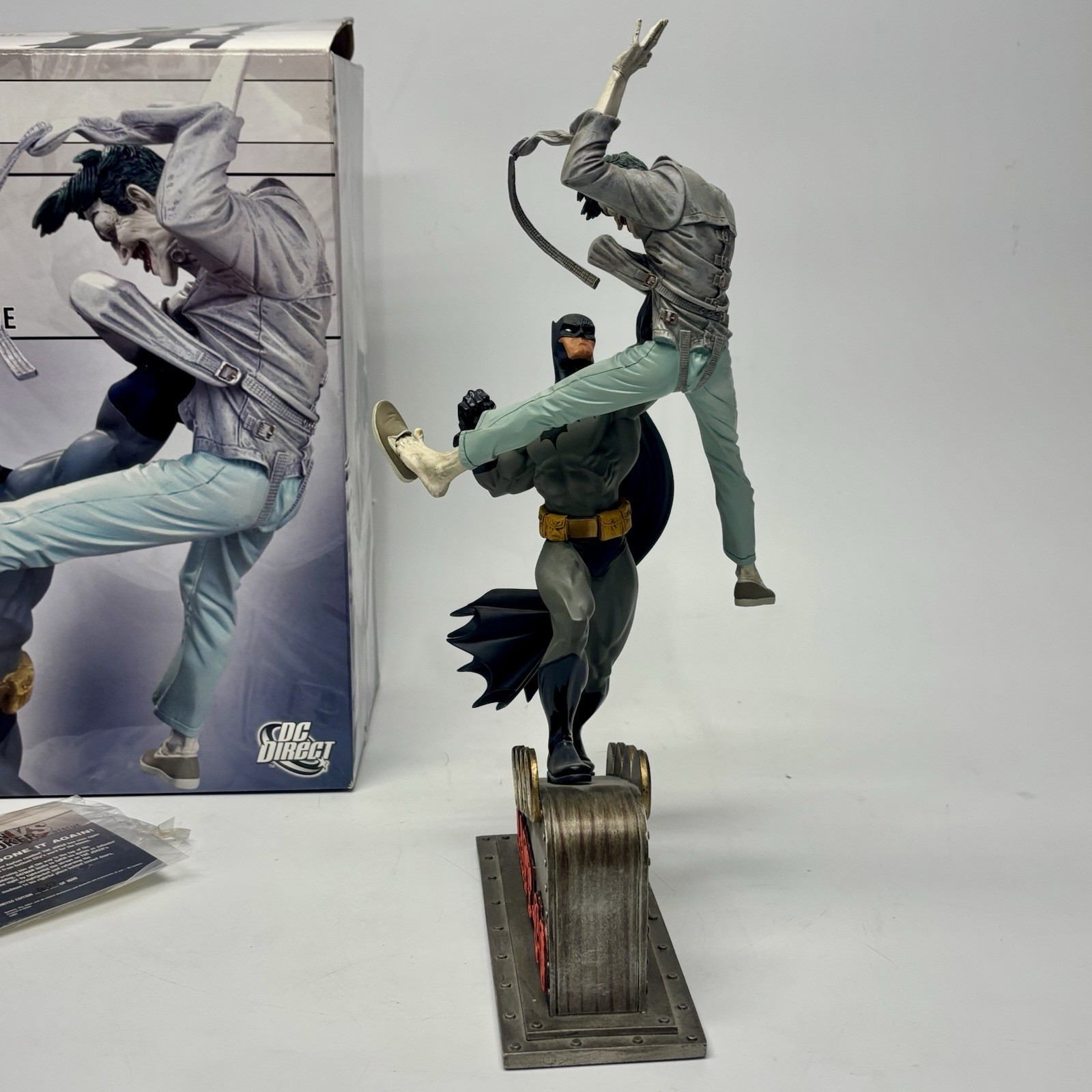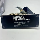 The Batman vs The Joker Statue by DC Direct is a limited edition collectible featuring highly detailed porcelain figures of Batman and The Joker from the classic confrontation in the Batman franchise. This item is a must-have for fans of the series, capturing a pivotal moment in the dynamic relationship between the two iconic characters. With its original design and limited availability, this statue is a prized piece for any collector of Batman memorabilia from the 2000-2009 time period.