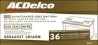 Fits: (Please review compatibility chart to make sure your model is listed for fitment. Be sure to read the notes column for important details pertaining to your specific model). AUDI A3 2015-2020 AUDI A4 1998 AUDI A6 1999-2001 AUDI S3 2020 BMW I8 2014-2020 BMW M550I 2020-2021 BMW X3 2019-2024 BMW X4 2020-2021 BMW X5 2019-2022 CHEVROLET BOLT 2017-2023 CHEVROLET SPARK 2013-2022 CHEVROLET SPARK EV 2014-2016 LEXUS UX250H 2020-2023 TOYOTA COROLLA 2020-2023 TOYOTA PRIUS 2017-2023 TOYOTA PRIUS PRIME 2017-2022 TOYOTA RAV4 2020-2023 VOLKSWAGEN E-GOLF 2015-2020 VOLKSWAGEN GOLF 2012-2017 VOLKSWAGEN GTI 2011-2015 VOLKSWAGEN JETTA 2017-2018 VOLKSWAGEN TIGUAN 2017-2023 VOLKSWAGEN TIGUAN LIMITED 2018 More Information: Gold / Professional; AGM; BCI Group LN1; CCA 520; RC 80; (LxWxH) 6.9" x 7.5" x 8.1" Designed as a long life, durable, reliable and safer battery solution, ACDelco Professional Automotive AGM batteries have proven to be an outstanding upgrade from the traditional flooded lead-acid battery. The Absorbed Glass Mat design is 100% leak and spill proof because the Electrolyte is permanently held in the glass mat separator instead of free flowing within each cell. From a performance perspective, the AGM battery boasts better recharge capability while providing up to 3 times more starts per cycle and produces more power per cycle. Specifications Amp Hour (Ah) 50 Amp Hour Capacity at 20 Hours 50 BCI Group Size LN1 Battery Technology Absorbed Glass Mat (AGM) Cold Cranking Amperage 520 Dry With Acid Pack No Flooded No Height (IN) 8.1 Height (MM) 207 Length (IN) 6.9 Length (MM) 175 Positive Terminal Location Top Right Front Programming Required No Reserve Capacity (min) 80 Reserve Capacity Minutes at 25 Amp Load (min) 80 Terminal Type SAE - Type A Voltage 12 Weight (lb) 34.17 Width (IN) 7.5 Width (MM) 15.4 It is illegal to dispose of a motor vehicle battery or other lead acid battery in a landfill. All car batteries can and should be recycled. Many towns have made hazardous waste drop-off free to encourage people to bring in materials rather than dumping them. In fact, some scrap yards will even pay you for your old automotive batteries! A quick internet search will help you find local drop off locations. OEM / Interchange Numbers: 88866037 Warranty Information: 3 Years / 36 Months WARRANTY DOES NOT COVER: Discharged batteries that can be recharged and returned to service. Cost of recharging or for use of rental batteries or vehicles. Labor cost for battery removal and installation. Batteries damaged due to charging system failure, negligence, abuse, accident, improper installation, or freezing. Loss of time, inconvenience, loss of vehicle use, or other incidental consequential damages.