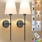 🏠Unique Design & High Capacity : wall sconces set of two comes with two firm long - post stand arms, white fabric shades, and two 5600 mAh rechargeable battery - operated light bulbs. It can also work for 30 hours at the highest brightness and 80 hours at the lowest brightness. It will enhance the wall decor of your bedroom, living room, dining room, or hallway. 💡Dimmable & 10 RGB Colors: The rechargeable wall sconce provide three color temperatures—2700K warm, 4000K natural, and 5700K cool white. It can adjust the brightness from 25% to 100% and use the remote to experience 10 RGB light colors, which unique and exquisite design will give you a comfortable and relaxing atmosphere. 🏠Wireless & Remote Control: Wall sconces set of two battery operated comes with the remote control, you can use it anywhere. Whether you are staying in the living room, sleeping in bed, making up in the bathroom, being busy in the kitchen or walking in the corridor, just press or touch the remote control, and you can adjust the battery wall sconce colors you want, making your home full of warmth. 🏠Wall Lights Wide Usages: Battery wall sconces set of two is a good decoration choice for bedroom wall lamp, bedside lamps, battery powered wall sconce, living room wall lamp and dining room wall scones. These battery - operated wall sconces can also be used in closets, above bathroom vanities, on dressing tables, and in the kitchens. 💡Easy Installation: Our set of 2 wireless sconces is easy to install: (1. Install the lampshade and bulb. The bulb can be easily charged and taken out. 2. Use the included screws to mount the sconce light on the wall. 3. Click and use the remote to experience 10 RGB light colors.) 💌After-sell Service & Warranty: Wireless wall sconces set of two included ( 2 * lampshades, 2 * remote control ,2 * Typ-C Cables, 2 * bulbs and 1 * manual ). If you have any questions please contact us through Amazon, will solve all your problems within 12hrs. Click 𝗕𝗨𝗬𝗡𝗢𝗪 and you can buy the battery operated wall sconce set of 2 you want today to make your home bright and cozy.