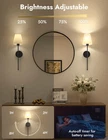 Battery Operated Wall Sconce Set of 2,Black Rechargeable Wall Lights with 5200mAh Dimmable Detachable Bulbs,10 Colors Wireless Sconces for Bedroom Living Room Hallway 【Wireless & Easy to Install】wireless sconces set of 2 are battery - powered, coming with two rechargeable 5200mAH LED bulb. Wall sconces set of two battery operated eliminating the hassle of wiring within the walls, conveniently for users who don't want to damage the wall surface and those without pre - installed electrical wiring, or renters. Sconces wall lighting battery operated are suitable for bedroom, living room, hallway, bathroom, kitchen, and stairway etc, creating an elegant and stylish atmosphere for your indoor space. 【9 Lighting Colors】Our battery powered sconces set of 2 offers diverse lighting options. It has three color temperatures: 3000K creates a cozy and inviting atmosphere, 4000K provides a clear and natural illumination, and 6000K is bright and energetic. There are also six RGB colors to switch between. Whether for a party or daily use, you can easily customize the lighting to suit different moods and occasions. With the black sconces wall decor set of 2, creating the perfect lighting environment is a breeze. 【Dimmable & Energy Saving】300 Lumen/5200 mAH. The battery powered wall sconce offers four brightness levels: 25%, 50%, 75%, and 100%. Customize the light according to your needs and desired atmosphere. Whether for a relaxing night or tasks, switch between settings easily. The working time of the black wall lights battery operated depend on brightness. It lasts 72 hours at the lowest brightness and 25 hours at the highest. 【Timer and Memory Function】You can easily set a timer for wall lamps battery operated to automatically turn off after 1 to 8 hours. This helps extend the battery life and reduces unnecessary power consumption. Even better, when you turn off and then turn on this rechargeable wall sconces set of 2 again, it will remember the color and brightness settings you last used, eliminating the hassle of re - configuration. 【100% Satisfaction Service】: We proudly stand behind all of our products 100% and offer a full 2-year service for our rechargeable wall lights. This will cover you if the wireless lights for wall indoor stop working or there are any defects within those 2 years. 【100% Satisfaction Service】We proudly stand behind all of our products 100% and offer a full 2-year service for our wall sconces. This will cover you if the black wall lights stop working or there are any defects within those 2 years.