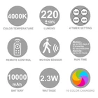 HONGUT Battery Powered Ceiling Light, Rechargeable LED Motion Sensor Light with Remote, Shower Light, 10 Color Changing Hallway Light Stick Overhead Light for Ceiling Stair Shed,White 2 Light Modes Color Changing Ceiling Light -- 18 Warm White SMD and 10 RGB LEDs. 28 super bright Upgraded SMD LEDs shower lights provide excellent illumination of up to 220 lumens. Perfect for small space lighting and mood lighting. 2 in 1 LED Ceiling Light Fixture -- Motion Sensor & Remote Control. Auto-off 45 seconds when no motion detected, Auto-on within 13 feet in summer and 19.7 feet in winter, It will turn on only at night or in dark conditions. You can also use the remote to control the led ceiling light on/off, RGBW, brightness dimmable, timer and sensor on/off. Remote Controlled Motion Detector Light -- Adjust color of light warm white/RGB with the "+" "-" button when light is ON. You can also set the wall light to turn off automatically in 15, 30, 60 or 120 minutes. The remote can control the shower lighting within 20 feet(without obstacles). Rechargeable Battery Ceiling Light -- The wireless ceiling light is powered by 3.7V 10000 mAh internal Lithium polymer rechargeable battery. Full charging time is approximately 7-8 hours. Easy to Install Closet Light -- Easy to install with screws(included). Suitable for cabinet, wall, kitchen, closet, garage, bedroom, workshop, bathroom, hallway, wardrobe, porch, stair, shelf, shed, yard, shower, laundry, doorway, garden, backyard, cupboard, corridor, pantry, basement, entrance, stairway, step, doorway, home, office, hotel mood ligting and anywhere high place need supplemental light. * 28 super bright LED lighting, 220 Lumens, 4000K warm white light & 10 color changing light, 2.3W, DC 5V, lifespan is 30,000 Hours. * Powered by 3.7V 10000 mAh internal Lithium polymer rechargeable battery. * 2 ways operate: motion sensor or remote control. * 2 light modes: warm white or RGBW. * The IR remote control will operate ceiling light within 20ft without obstacles. * Remote control battery (1*CR2025 button cell battery) * Easy to install with screws(included). TIPS: Please turn on the power switch inside the light base before use it. Packing List - 1 x LED Ceiling Light - 1 x Remote Control - 2 x Screws - 1 x Micro USB Cable - 1 x User Manual SHIPPING Domestic Buyers - We have confidence in our products, but if you are not fully satisfied please contact us within 30 days of purchase and you will get full refund. - We ship within 3 business days of payment, usually sooner - We offer FREE shipping on all orders! - We only ship to the lower 48 states, no APO/FPO addresses or PO Boxes allowed International buyers – please note: Import duties, taxes, and charges aren't included in the item price or postage cost. These charges are the buyer's responsibility. - Please check with your country's customs office to determine what these additional costs will be prior to bidding or buying. * Order Cancellation Policy ** You can return a product for up to 30 days from the date you purchased it. 1. The seller reserves the right to cancel the special case only due to eBay cancellation fee. 2. The decision of seller is the final. 3. The seller will respond to the cancellation request within 2 business days. Please wait for the result of cancellation. 4. In case the cancellation is not completed by some reasons, the buyer can follow the options below to get the refund. 4.1 The buyer can reject the item when it arrives. 4.2 The buyer can send the item back to the seller within 30 days If the buyer receives item (USA Shipment ONLY). The seller will provide the FREE return label to the buyer when the buyer opens " Return Item" case on eBay by using the reason as "Change my mind" ONLY. 5. When buyer has placed the order. The order will be processed and completed by automatic warehouse system within 5 minutes. In case that buyer sends the cancellation request after 5 minutes of placing the order, the request will be rejected. **Sending direct message to cancel the order is not allowed for every case.* Return Policy For the return case - If buyer would like to return the items for refund or replacement, please CONTACT SELLER to receive the free return label from seller. The refund or replacement will be processed with the tracking number of return label which is provided by seller only. The other ways of return which are not approved by seller will not be processed for the refund or replacement.