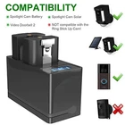 Return Policy Fast Delivery Trusted seller Battery and Charger for Ring, Batteries (1-Pack) and Dual USB Charger for Ring Spotlight Cam Battery, Ring Video Doorbell 2, Rechargeable 3.65V Lithium-Ion Battery(Not for Stick Up Cam) Product Description FULLY COMPATIBLE: The replacement battery 100% compatible with Ring Video Doorbell 2 / Ring Spotlight Camera. This replacement battery has the metal clip and works perfectky like OEM. Notice: The battery is NOT compatible with the Ring Stick Up Cam! POWERFUL BATTERY CAPACITY: Premium cells create quality batteries. 6500mAh high battery capacity for continuous surveillance. MULTIPLE CHARGING OPTIONS: This battery charger using general USB cable and micro usb port input(5V/2.1A), can charge wver t is a USB jack or cable by just connecting with your laptop, car adapter and power bank. Gives you more options than a standard battery charger. The Micro USB charging cable is built-in in the charger station. Safety Features(Built-in Multiple Circuit Protection): CE FCC Rohs certified, built-in safeguards protect your devices against excessive current, overheating and overcharging. This ring charging station built-in LED Digital Display Screen,can easily shows the percentage of battery life in digital format, no more guessing whether it charge or not!(The light will darken after about 23 seconds of charging). WHAT YOU GET: 1*Replacement Battery for Ring, 1*Dual USB Charger Station for Ring, and our 18-Month Manufacturer and 24-Hour Customer Service. Shipping Returns Payment Shipping Shipping is FREE to all addresses other than APO/PO boxes in the lower 48 states. All our stock ships from US-based warehouses. Shipped via USPS or UPS (depending on location and package weight) Unless stated otherwise, all orders will ship within 24-72 hours of your payment being processed. Check our feedback to see the great reviews of FAST shipping we offer. Returns Seller does not accept returns Payment We currently accept payment via eBay managed payments only. Once payment is cleared, we will dispatch your shipment within 1-3 business days. Please refer to the "Shipping" tab for more information regarding shipping speed to your destination.