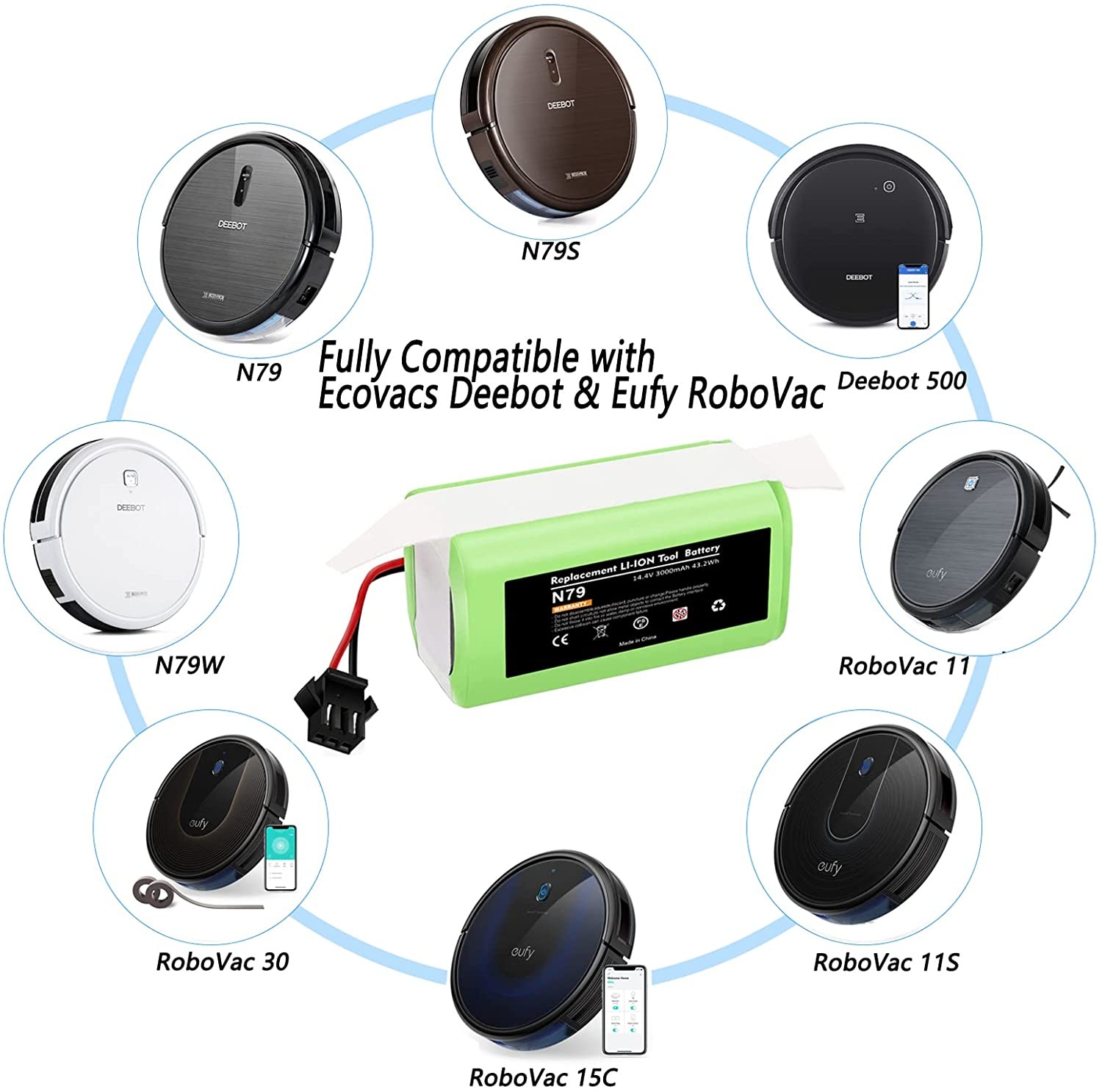 Product Description About Items: 🌳 【Battery Type】 Battery type: Li-ion battery,Voltage: 14.4V, Capacity: Upgraded 3000mAh(No Fake High Label Capacity). No memory effect, no pollution, and low self-discharge, can be charged or discharged as needed without loss of capacity. 100% for original charger. 🌳 【Compatibility】 for Ecovacs Deebot N79S, Deebot N79, Deebot DN622 , Eufy RoboVac 11, RoboVac 11S, RoboVac 11S MAX, RoboVac 12, RoboVac 15T, RoboVac 15C, RoboVac 15C MAX, RoboVac 30, RoboVac 30 MAX, RoboVac 30C, RoboVac 35C, G10 Hybrid, G30, G30 Edge, G30 Hybrid, G30 Verge . See more compatible model in description. 🌳 【600+ Recharge Cycles】 POWTREE 3.0Ah Ecovcas battery replacement can be recharged up to 600+ cycles of use. No memory effect, low self-discharge rate and long-lasting battery life 🌳 【High Quality】 Battery uses the highest quality cells, safe with rapid-charge technology while providing overcharge and over discharge multiple protection to increase the life of the battery. Futures: 2600/3000/5000mAh High Capacity Battery 1. Li-ion Rechargeable battery, convenient to use. And it has no memory effect. 2. Can be charged or discharged as needed without loss of capacity. 3. Same size & function as original battery, don't worry damaging your robot. 4. Quick charge and easy to install. 5. ISO9001, RoHS, and CE certified 6. NO FAKE HIGH "LABEL" CAPACITY High Performance Li-ion Battery with 600+ Recharge Cycles 1. With 3000mAh capacity, the battery can last 120-180 minutes after being fully charged (Depending on use & setting), like the original. 2. Built-in multiple protections against overload, overvoltage, overcurrent, short circuit and internal overheating, ensure effective and safe cleaning in your home. 3. Imported high density lithium battery, higher cost, better performance, more durable(can be recharged 600+ cycles) for: Compatible for Deebot Series: Ecovacs Deebot N79, Deebot N79S, Deebot 600, Deebot 601, Deebot DN622, Deebot 661 Compatible for RoboVac Series: Eufy RoboVac 11 (T2102), RoboVac 11S (T2108), 11S MAX (T2126), RoboVac 12, 15T, 15C (T2120), 15C MAX, 25C Max, 30, 30C, 30 MAX, 35C, G10 Hybrid, G30, G30 Edge, G30 Hybrid, G30 Verge Compatible for : for Conga 990, Tesvor x500 NOT for: NOT for Eufy RoboVac 11+, iLife A4/A4S/A4S pro/A6/A9/V7/V7S/V7S pro About Us Welcome to our store! We are a professional worldwide wholesale company. High product quality, reasonable prices, excellent customer service and a reliable credit standing is our tenet.If you like our products, please add my eBay shop to your "My Favorites" list. All the products we are selling include factory warranty , don’t cover items that have been abused, burned and damaged in any form. Payment We accpet payment via PayPal , E-wallet , some Credit Card , Direct Debit and Other specific payment methods. Import duties,taxes and charge are not included in the item's price or shipping cost.These charges are the buyer's responsibility. Please check with your country's customs office to determine what these additional costs will be prior to bidding or buying. Insurance is included in the Shipping & Handling costs paid. Shipping Items are generally shipped out in 1-3 business day after your payment has been cleared (Sat. & Sun. excluded.) Orders from the United States Warehouse will be shipped out via USPS or UPS. The shipment usually takes 3-7 business days(Saturday and Sunday excluded), if you need the item urgently, please contact us for detail before purchasing. Local pick up is not available. Orders from China will be shipped via Belgian Post or Post NL.The shipment will take 15-35 working days,please contact us if you didn't get the parcel for a long time. We do not ship to APO, FPO, Alaska, Hawaii and Puerto Rico addresses, and we are unable to ship to PO BOX for this item. Please provide your psychical address. Returns You have 60 days to return it from the date it was received. All returned items must be in the original package and you must provide us with the shipping tracking number,specific reason for the return and your ebay ID. We will refund your full winning bid amount , upon receipt of the item in its original condition and package with all components and accessories included. Contact Us Dear buyers,we appreciate your business, if you are satisfied with our service , please leave us a Positive feedback and rate the details of the transaction (Detailed Seller Ratings) with a " Pefect Stars ". We aim to provide best services and products in exchange your maximum statifaction. We will do our best to resolve your issue till your satisfaction. O ur working time is: 09:00 AM-18:00 PM(Chinese time from Monday to Saturday) .All emails will be answered within 24 hours except weekends and holidays. powered by