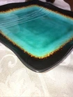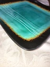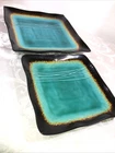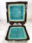 Vintage 2007 Baum Brothers Galaxy Jade square stoneware dinner and salad plates. Preowned. Made in China. Designed in the US. Asian influence captured in the green, brown and gold colorations punctuated by the illusion of bamboo stalks. Beautiful for personal serve-ware use or accent decor. Crazing in the plate wells (see photos) but overall in undamaged condition. No chips or cracks. Being offered as a set of two pieces. Measurements and weights provided in the descriptions above.
