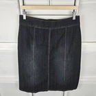 Bay Trading denim skirt, size 12. Dark blue colour. A-line, pencil style. Knee length. Panelled design. Vintage Y2K skirt. In very good used condition. Approximate Measurements in inches: Waist: 15.5 Length: 25