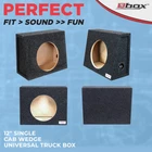 Single 12 inch sealed subwoofer enclosure : The Bbox 12 inch single sealed wedge shape SPL-Tuned subwoofer box enclosure is designed for optimum bass response and low frequency reproduction which is ideal for lower profile sound quality subwoofers. Get the most out of your vehicle's subwoofer with car stuff designed for power and quality. Special formula : We use Aliphatic wood glue on our 12" subwoofer enclosures to ensure an airtight seal between all MDF parts. Each 12 inch subwoofer box also gets a second application of glue around all internal joints after the final assembly. High grade MDF : Our subwoofer box enclosures are built with a durable MDF that is 3/4" thick for solid frequency response and accurate music reproduction and we use a CNC Miter to ensure an airtight fit for your powered subwoofer. Our Dado design and construction offers a precision fit for our car subwoofer boxes & enclosures, which ensures a rattle and noise free environment. Airtight recessed side panels : We use quality materials like our special aliphatic resin wood glue and brad nails from a pneumatic nail gun to create a tight hold on the MDF parts during the glue drying process to ensure that our subwoofer boxes have an airtight no-leak, no-rattle air chamber improving the overall sound quality of your sound system BETTER SOUND, BETTER BASS, BETTER FUN: Get the party started with sound quality you can truly jam to. Our subwoofer enclosures turn your truck into a music machine! Dramatically improve the sound quality and bass response of your truck’s audio system and listen to the music the way it was meant to be heard! Dimensions Sub cut out: 11.125”, mounting depth: 5.5”, Height: 15.38”, Width: 20.13”, Depth: 11”