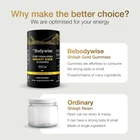 About this item: SOURCED FROM HIMALAYAS: Harvested from pristine heights of Himalayan Mountain, our Pure Himalayan Shilajit Gold Gummy contains pure & organic gold grade shilajit, sourced from 18,000 ft above sea level. Especially prepared to aid transformational journey towards wellness by boosting energy and aiding enhanced workout routine & recovery. Our gummy is a modern way of consuming our trusted power packed supplement. LAB TESTED & PREMIUM QUALITY: Be Bodywise Pure Himalayan Shilajit Resin Gold Gummy is “Lab Tested” to be free from heavy metals, fillers, and harmful additives. Crafted in its most authentic form, it has no added sugar, corn starch, glucose syrup, artificial colours, or gum. It's completely vegan, natural, and non-GMO. NATURE’S POWERHOUSE: With "3000 mg Pure Shilajit" , “ No Added Sugar” and infusion of potent ingredients including Ashwagandha, Black Musli & Gokshura; our Shilajit Gold Gummies pack a powerful punch of essential nutrients that are 100% natural and organic. Our Shilajit Gold Gummy comes free of heavy metal and chemical contaminants. Each pack comes with an “Individual Lab Certificate” that guarantees purity and superior quality. STRENGHTEN & REVITALISE: Our Power packed, all-in-one supplement combines potent action herbs like Himalayan Shilajit Resin, Ashwagandha, Saffron, Gokshura and Safed Musli. Every gummy delivers a powerful dose of Shilajit and Ashwagandha. These ingredients help enhance strength, aid post workout muscle recovery and reduce fatigue, giving you a boost to your overall wellbeing. TRAVEL FRIENDLY & INDIVDUALLY WRAPPED: Goodness of traditional ayurveda in a modern avatar; our travel friendly, “individually wrapped” gummies are a delicious way to add natural shilajit to energise your active daily lifestyle & enhanced workout routine. Have 2 Gummies a day for optimal result.