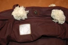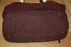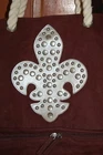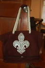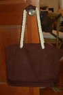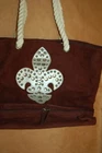 Royal Plush Beach Bag. Unique, Rare. Large, leather, Silver Fleu DeLis on the front of the bag. Large White rope handles. Large inside, with small make-up bag. Inside - side pockets with zipper closure. Zip around bottom is lined with clear plastic to protect wet items. Bag only used a few times, Very good condition.