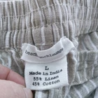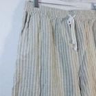 Beach Lunch Lounge Raffia Lightweight Cotton Linen Margot Cropped Pants Size L easy drawstring waist and cropped silhouette, these pants are a must-have for the season. Featuring a pattern of timeless stripes and slit pockets, they make chic look easy. Easy pull-on drawstring pants Versatile silhouette Wear with sneakers or sandals Lightweight linen/cotton Elastic waist Gently worn approximate measurements waist across 16" rise 12" inseam 20"