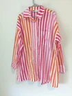 Beach Riot Pink Orange Stripe Alexa Long Sleeve Button-Up Cotton Cover-Up Top Beachy Travel Swim. Excellent pre-owned condition. No size tag. Perfect for L-XL. Soft and comfortable. Lightweight. Some stretch - relaxed fit. 100% cotton. Length: 33" Pit to pit: 25.5"