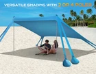ENHANCED STABILITY & DURABILITY: With exceptional 8 large sandbags and 4 thickened aluminum poles, this windproof beach tent sun shelter offers superior stability, outperforming others by 80%; Made of long-lasting high-stretch Lycra fabric, it stands up to various weather conditions, providing reliable shelter for your outdoor activities; The vibrant sky-blue color adds liveliness, making it a perfect addition to your cool summer adventures SPACIOUS & VERSATILE: Measuring 10x10 feet, the beach shade canopy can comfortably accommodate up to 8 people; The tent provides ample space for you, your family, or friends; Provided with 8 ground stakes, it can be used on both beach and land surfaces; Ideal for park outings, backyard gatherings, camping, fishing adventures, and more SUPERIOR UV PROTECTION: With UPF50+ protection, the beach tent pop up shade reduces over 96% of harmful UV rays; It's a perfect family-friendly shelter, reducing the risk of sunburn and glare during your outdoor fun time LIGHTWEIGHT & PORTABLE: Weighing only 8.3 pounds, this beach canopy tent sun shade comes with a sturdy nylon travel bag, making it convenient to carry or store in the car trunk. Bring sun protection anywhere with ease QUICK & FLEXIBLE SETUP: Set up is fast and simple; Use 2 or 4 support poles to adjust the shape according to the number of people and the angle of the sun; Set up can be completed by one person in just 5 minutes, leaving you more time to relax and enjoy
