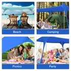Large Family Sun Shelter - beach tent sun shade canopy's four 6.6FT tall aluminum poles keep entire canopy area stays at full height that increasing the shaded area by 50%.10x10FT is enough for 6-8 people. 7x7FT is enough for 3-6 people. It holds up well in the wind because of the extra big sand anchors and high quality rust-proof aluminum poles.Providing enough space for couples, families and friends' party. FOUR CONVENIENT FAMILY SIZES. Choose the ideal that works for your family needs Advanced Sun Protection - Our sun tents for beach and outdoor crafted with high quality elastic Lycra fabric, offering UPF 50+ sun coverage protection. Can block up to 98% of harmful UV rays, reduce sunburn or glare with protection coating making it ideal for kids or adults laying out. Superb shade windproof, water resistance beach sun cover keep you protected on both sunny and rainy days. Combined with excellent 4-sided ventilation performance enjoy the sea breeze in the shade of the beach Quick and Easy Outdoor Setup - Each beach tent comes with stability poles, anchors and windproof ropes that let you use it over sandy beaches,thick grassy areas, or even in rocky camping spots. Equipped with sand shovel to quickly hold large amount of sand to anchor and overfill all 4 sandbags.Foldable thickened rust-resistant aluminum poles has a pointed stake at the bottom can stick them straight into the sand or ground.The sturdy EVA foam ball on top of the poles won't tear the fabric Easy Assemble and Portable - Prepare the beach tents sun shelter pop up in a matter of minutes. Just stretch out canopy and fill flarge sand anchor fully, use the foldable pole to support the tent. Secure the fabric on the EVA ball with bungee cords and pull tight. Pull sandbags away to tighten structure. If needed, bury sandbags and use the ground pegs to add windproof ropes. And when the trip is over, you can easily take it off. The easy-to-carry waterproof travel bag weighs only 6.5 pounds! All-Purpose Pop Up Beach Tent - For family trips to the beach,weekend tailgating party or summer camping picnics,cool beach umbrellas for extra enjoyment on hot days. Comes with a portable storage bag easily accommodates Lycra canopy,folding aluminum poles,tent pegs,elastic cords,sand shovel etc. you can popup almost anywhere. This portable pop up beach tent sun shelter can become your go-to companion when going to the beach, camping,park,picnic party,fishing backyard barbecue or music festival!