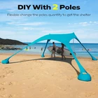 【Large Size Beach Canopy】- beach tent sun shelter is 10x 10 ft, with 4 aluminum poles up to 6.6 ft in height, which can hold up to 8 people for beach party or outdoor picnic. Your home base will become the most coveted spot on the entire beach 【Quick and Easy Setup】- Beach shade canopy can be set up by a single person within 5 minutes. Simply lay it flat, fill the bags with sand, pull the bags apart to make a large "X," and prop up your tent with 2-4 poles 【Portable and Lightweight】- Weights 8 lbs and comes with a long-lasting nylon travel bag. Whether you're flying to a coastal paradise, camping, or fishing trips, you'll have no problem packing your pop up beach tent 【Advanced Sun Protection】- Designed with the high stretch Lycra fabric and offering UPF 50+ sun coverage and water-resistant function, lightweight beach tent pop up shade can shade your outdoor beach holiday. Family beach tent durable materials are not afraid of stretching and tearing 【Stable Windproof Performance】- Fill the sandbag with sand or stones as much as possible which makes this portable beach canopy has better wind resistance. You use beach shade tent over sandy beaches, thick grassy areas, or even in rocky camping spots