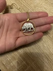 Polar bear pendant and necklace. Gold and silver color. Hand cut.
