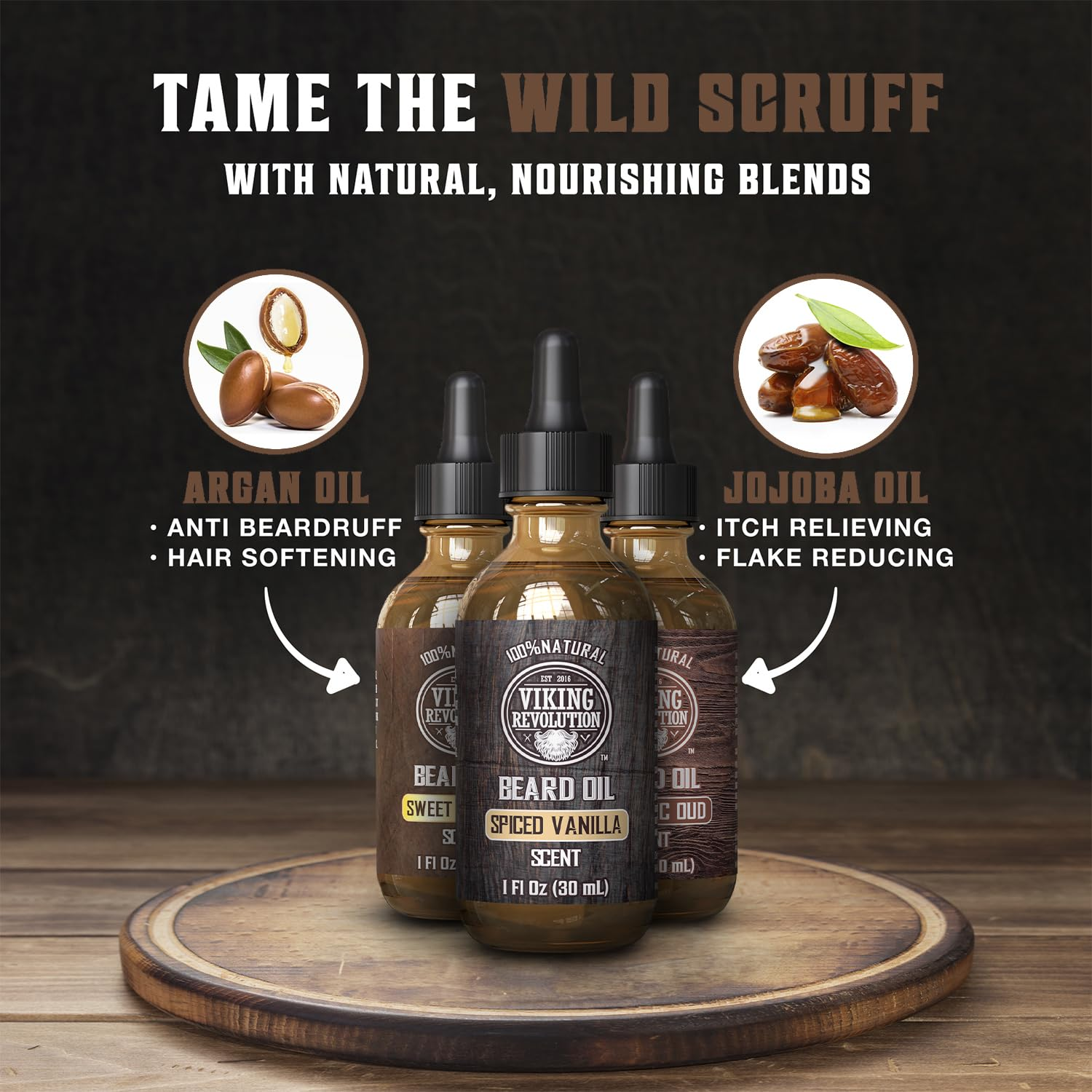 Beard Oil for Men 3 Pack - Natural Mens Beard Oil Variety Set - Spiced Vanilla, Sweet Tobacco, Majestic Oud - Beard Conditioning and Moisturizing for a Healthy Beard (3 Pack, 1Oz) Be a Stunner - Our new scents will leave you to revel in the fragrance of your beard for hours. Goodbye, Beardruff! - Soothe your itchy and irritated skin with a just a few drops a day. Natural Beard Care - A perfect blend of Argan & Jojoba Oils strengthens facial hair and helps avoid thin patches. Tame Stubborn Facial Hair - Have a manageable, frizz-free beard that is soft & smooth to the touch. The Viking Promise - If for any reason, you're not completely satisfied, simply contact us and we'll take care of it. Product Description Package Dimensions 4.41 x 4.21 x 1.46 inches; 9.17 ounces Liquid Volume 3 Fluid Ounces Product Benefits Strengthening Material Type Free Sulfate Free, Paraben Free, Formaldehyde Free Scent Vanilla Tobacco & Oud Hair Type Normal Size 1 Fl Oz (Pack of 3) Shipping Fast shipping is very important for us. Our standard US shipping service is FREE. Your order will be shipped within 2-3 business days upon full payment received. Your order will be delivered within 2-3 business days after the handling time. We only ship to the confirmed PayPal address. We reserve the right to cancel any order for any reason at any time. We are not responsible for undeliverable addresses. Returns and payment We offer a 30 days return policy from checkout winning date. We allow only PayPal as payment method FeedBack Your feedback very important to us, after you get your package and you are satisfied with our service please leave us positive feedback If you have any problem with your order / any questions please before leave any type of feedback For any questions, using eBay contact system Please visit our eBay store to check out other items for sale! Thank you for shopping at our store.
