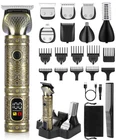 All in One Mens Trimmer: It has 7 trimmer heads, a T blade edgers, 2 in 1 cutting head to trim hair and beards, a foil shaver, a nose hair trimmer, a body hair trimmer for men, a precision beard trimmer and a design trimmer. Shaving Kit for Men: Beard grooming kit men also come with 9 guide comb sizes for different hairstyles and lengths. 4 hair guards 1/3/5/7 mm, 4 guide combs 3/6/9/12 mm, a durable stand and storage pouch for travel. The interchangeable multiple heads are for trimming face and neck, mustache, sideburns, stubble, body hair and facial hair. Ultra Sharp Steel Blades: The electric razor for men face delivers an even, precise, close shave and clean cut; its sharp blades can easily cut through fine, thick, coarse hair without pulling or snagging. The T blade liners can be close to the skin for a zero-gap trim and can do hairlines or edges. Useful LED Display: This cordless hair trimmer for men haircut has a digital display that can constantly shows the remaining battery life to let you recharge the beard and mustache trimmer. Rustic personal mens grooming kit is a versatile tool to shape and trim different areas of body. USB C Rechargeable & Long Battery Life: This hair clippers for men cordless built-in lithium battery provides wireless operation for up to 120 mins after 1.5 hrs of charge. Included a USB C cable but wall adapter is not included. Easy to Use and Clean: The portable body/facial grooming clippers set is ergonomic, ensuring a comfortable grip and effortless to use. Wash the stainless steel blades by rinsing under water.(Note: Don't immerse the whole electric hair trimmer in water). Gifts for Men: The men's hair clippers are a solid pick for a complete grooming experience. Perfect for personal use or as a stylish gift for your fathers, dads, and husband. Give it as a christmas gift or birthday gifts to your family and friends.