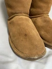 Stay warm in style with these Bearpaw Bianca Tall II boots, featuring a soft wool-blend lining and sturdy leather construction. These boots are perfect for cold weather and casual wear. They have a few stain spots and wear on the toes (see photos), but still have plenty of life left. Details: • Brand: Bearpaw • Style: Bianca Tall II • Size: Women’s 9 • Model: 610W • Color: Brown / Tan • Material: Leather upper, wool lining • Closure: Pull-on • Condition: Pre-owned, with staining and wear on toes, see photos. Please see photos for exact measurements and compare with your own items before purchasing.