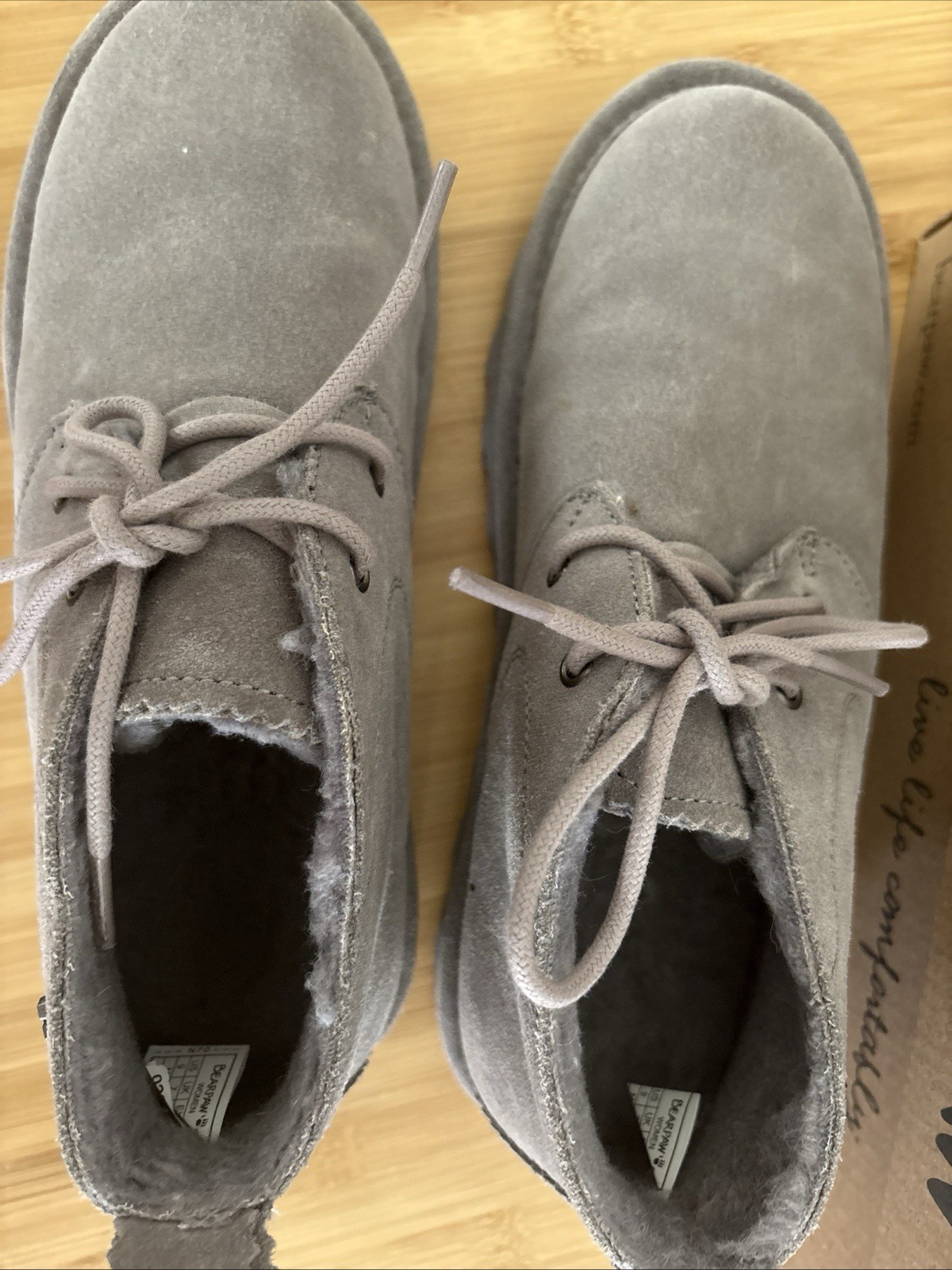Bearpaw Skye suede sheepskin booties waterproof, size 9m. Grey Fog color. 2578W. EUC, worn once. See pictures.