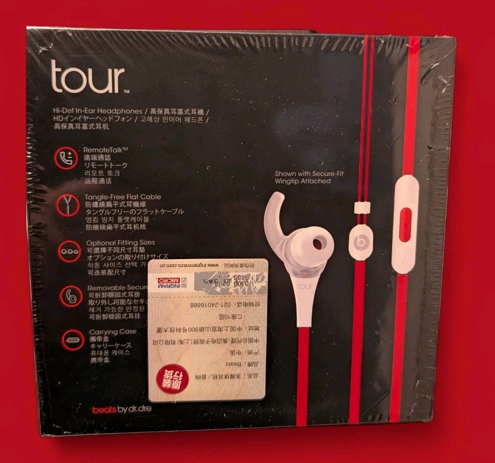 These beats tour In-Ear headphones are new in the box. They ship with one business day The Beats Tour 2.0 in-ear headphones were redesigned for improved comfort, enhanced durability, and signature Beats sound quality. Key Features Redesigned Fit: These earphones feature a new, customizable fit with the addition of removable secure-fit wingtips and various ear tip sizes to ensure they stay in place during active use. Improved Sound: The drivers are engineered to play music loudly without distortion, delivering a full range of detail with crisp highs and powerful lows for an immersive listening experience. Tangle-Free Cable: The ultra-flexible, flat cable is designed to resist tangles, making them easy to store in a pocket or bag. Built-in Mic & Remote: The in-line RemoteTalk control allows you to take calls hands-free, change the volume, and switch tracks on compatible Apple and most Android devices. Durability: The Tour 2.0 headphones are sweat and water-resistant, making them durable enough for workouts or use in various elements. The following items were typically included in the original packaging for the white 2013 Beats Tour 2.0: Beats Tour 2.0 Earphones: The main in-ear headphones unit with a tangle-free flat cable and an in-line mic and remote (ControlTalk). Eartips: Four pairs of different-sized eartips to ensure a comfortable and secure fit. Wingtips: Three pairs of removable secure-fit wingtips for added stability, especially during physical activity. Carrying Pouch/Case: A soft or semi-hard carrying pouch (sometimes described as a hard-shell case) with a clip for storage and portability. Documentation: A user manual/quick start guide, warranty information, and potentially a product brochure or a Beats sticker. Thank you very much for your interest in this listing. If you have any questions, please don't hesitate to ask. I'm always happy to help.