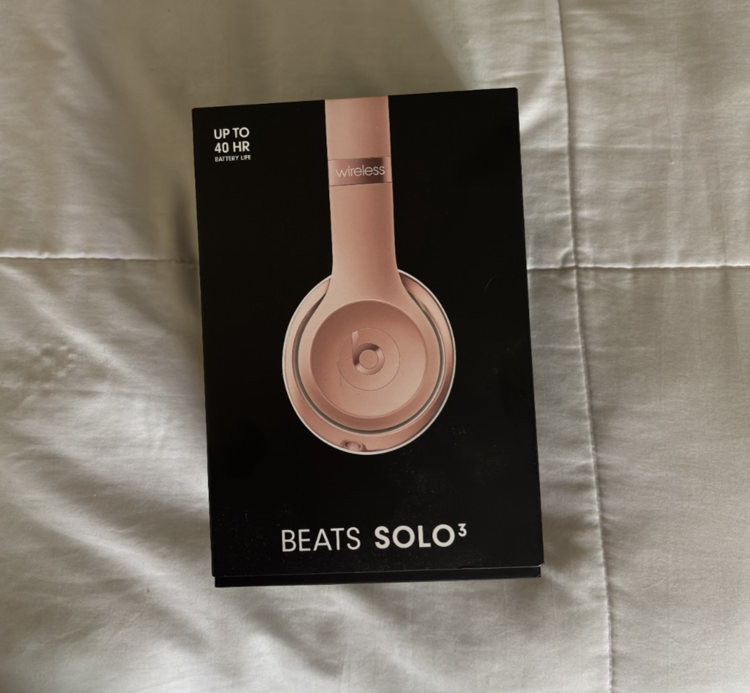 Beats rose gold bluetooth headphones. USED but GOOD conditon, they work perfectly and they come in the box that includes a case for traveling and a cord for headphone chargeing. They have been used and have some makeup stain from multiple wear but not badly stained and may be able to be cleaned more.