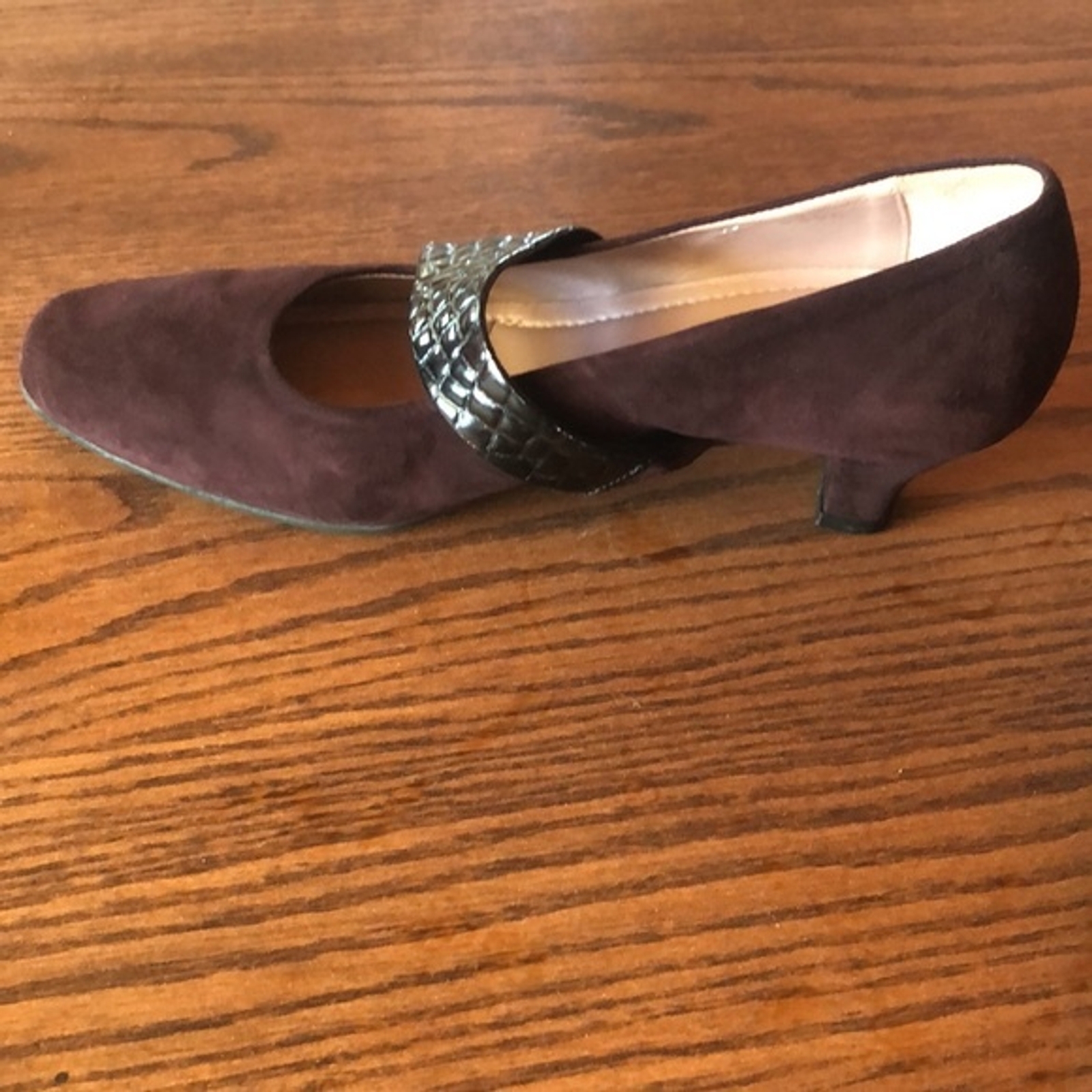 These gorgeous Beautifeel pumps are a must-have for any fashion-forward woman! The stunning burgundy suede upper is complemented by the stylish faux-croc leather kitten-heel and outsole, giving these pumps a unique and elegant look. These shoes are perfect for any occasion, whether it's a night out on the town or a day at the office. The faux leather lining and insole provide comfort and durability, while the US size 6.5 ensures a perfect fit. The purple color adds a pop of color to any outfit, making these pumps a versatile addition to your shoe collection. Don't miss out on the opportunity to own these beautiful heels! European size 37 B-B