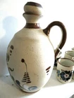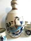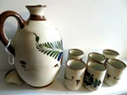 Beautiful 8 Piece Stoneware Set Pottery Tequila Decanter Bottle Shot Glass Set Barware Decanter with stopper 9.5" x 5.5" 6 Shot glass/cups-3" x 2.25" Signed "MEX- C.R." As new-No cracks Please see pics for further clarification Shipping includes tracking. Please take a moment to check out my other listings. Thanks. Thank you for your support. Look forward to your next visit. 775