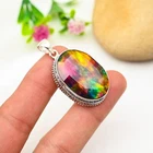 Beautiful Ammolite Gemstone Pendant 925 Sterling Silver Handmade Jewelry Gift