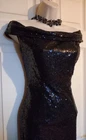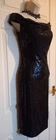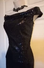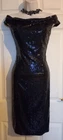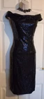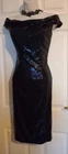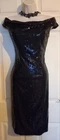 C584 Stunning club L Retro 50s pinup style Bardot dress - In excellent preloved condition in classic black covered front and back with sequins Off the shoulder bardot style neckline Fully lined Fitted bodice with wiggle style skirt Zip fastening at the side Marked as a Sz 10 with stretch in the fabric, however, as all dress manufacturers are different please check measurements as I don't accept returns if she doesn't fit 🙏 Waist 30" Bust 34" Hip 36" Length shoulder to hem 36" Take a look at my other vintage and vintage inspired items - auction and buy it now🤩 - I'm happy to combine postage😊