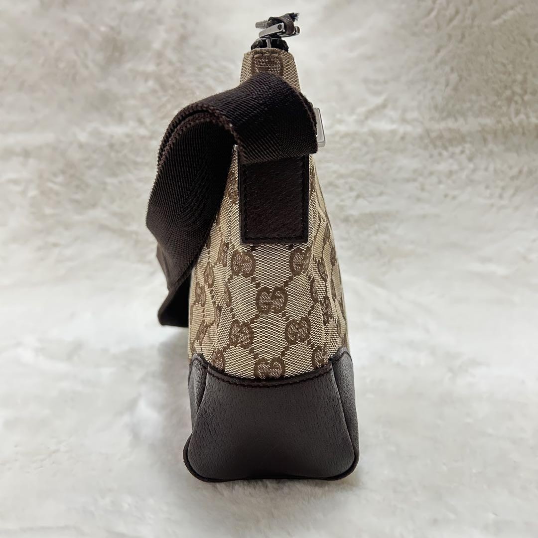 Beautiful Condition Gucci GG Pattern Canvas Leather Shoulder Bag Brown Ladies Us