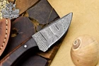 Custom Hand Made DAMASCUS STEEL HUNTING KNIFE WITH ROSE WOOD HANDLE We offer a shipping discount for More then one purchased . And discount will be apply on combine invoice, Discount will not apply on separate payment. ITEM DETAILS OVER ALL LENGTH 3.0 inches long (Approx) HANDLE LENGTH 1.5 inches long (Approx) BLADE LENGTH 1.5 inches long (Approx) BLADE HARDNESS 58-60 HRC Which Holds HANDLE MATERIAL ROSE WOOD COVER LEATHER SHEATH This Awesome custom made KNIFE has a nice hand forged with the combination of 4340 & 1080 steel. HOW OUR DAMASCUS IS MADE: All our Damascus is real and not just an acid etch. Damascus is a mixture of 1080HC and 4340 nickel carbon. You heat them up together and then fold the bar over and over to get the desired layers, ours are 396 layers. Then you burn the blade in acid, and it turns the nickel satin color and the high carbon turns blackish gray. This is how the layers are exposed to show the layers of the new steel created coined "Damascus". All Damascus is acid etched to show the layers. If you high polish the metal it will be shinny satin like all steels. Only after you burn the sides of the blade with acid do you see the layers of the two steels. Makes sense? After we make our knives we high polish the handles and put an edge on the blade. The high polishing buffs off the acid burned layer of the handle, and the blade edge is sharpened and the acid burned edge becomes satin. You can re-burn the tang of the blade near the handles and the edge of the blade and it will show the layers once more. All our knives are hand made, durable and unique ***** YOU WILL RECEIVED THE SAME KNIFE Qality Standards Our Damascus blades are made from high quality non-stainless steels which rival or exceed any Damascus blade made from the 10 series with 4340. Our Damascus combination has taken years to perfect and has been tested under a variety of application which will offer professional performance in categories of toughness, strength (lateral stress) and edge honing and holding ability. In a 5 spot Rockwell test our blades will average near or close to 58 which offers a perfect balances between its toughness and strength.Our blades due to carbon content need to be regularly treated with wax and/or 3 in 1 oil to maintain its superior quality. Questions if you have any question feel free to send us message we aim to answer all questions within 24 hours Feedback If you are not satisfied with our service please contact us before leaving any negative or natural feedback. We will resolve all issues as quickly as possible. Disclaimer We are not responsible for any injuries associated with the use of our tools. Our products are intended for legal use only by responsible buyers. Therefore, we will not sell our products to anyone under the age of 18. Before bidding please check your country laws as some countries Custom don't allow this. If your purchase is held by Custom Authorities in your country/State we will not be responsible for that and no refund will be issued Shipping We offer a 20% shipping discount for More then one purchased . And discount will be apply on combine invoice, Discount will not apply on separate payment We ship within 24 hours after receiving complete payment but this can be delayed due to week ends or Governments and Religious Festivals . . This is beyond our control and we apologize for this inconvenience. Precautions Our Tools are very sharp so open and use them very carefully We are not responsible for any injuries associated with the use of our tools Tips to Care knife 1. NEVER STORE YOUR KNIFE FOR LONG TIME IN LEATHER SHEATH. 2. LEATHER CAN ABSORB WATER, WHICH WILL RUST THE KNIFE. 3. ALWAYS CLEAN THE BLADE AFTER USING WITH OIL OR WAX