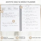 Transform Your Weeks By Planning For Success With The Beautiful Undated Weekly Planner By ZICOTO! Turn your weekly schedule into a smooth organizational masterpiece with ZICOTOs’ undated planner, designed to effortlessly tackle every week's tasks. The minimalist planner ensures 52 weeks of well-organized priorities, to-dos, ideas and more, offering efficient planning to streamline and de-stress your life. Experience the natural surge in focus and productivity with the functional to do list planner. The simple and clean layout enables you to maximize your focus, keeping your mind clear as you structure your weeks towards achieving your weekly goals. The 8.3x6.5” productivity planner offers plenty of space to unleash your inner organizational genius. Each week unfolds with two pages, offering ample space for priorities, to-dos, notes, and creative ideas. Seize the opportunity to get the most out of your weeks – and ultimately, your life. Each glance at your planner becomes an inspiring moment! Not only do you feel empowered by your new-found planning mastery, the beautiful design of the to do planner sparks creative flow and motivation. Furthermore, the sturdy ring wire binding adds stability and durability to your planner. Start your journey towards enhanced organization and reduced stress anytime you want - the undated design of the weekly planner makes it possible. Whether you're embarking on a weekly planning session, using it as a daily journal, a habit journal or simply freeing your mind with a daily brain dump, the undated planner is ready for you to grasp the opportunity and make a positive change in your life. Manage Your Weekly Agenda With Ease: Tackle each week effortlessly with Zicotos’ undated weekly planner. The versatile to do planner is designed for 52 weeks of organized priorities, to-dos, schedules and more. Streamline your life with efficient planning! Ultimate Focus & Productivity Boost: Thanks to the straightforward layout of the minimalist to do list planner you can transform your weeks into a well-structured, fulfilling journey towards your goals & aspirations by maximizing your focus and keeping a clear mind Plenty Of Space To Ignite Planning Mastery: Find ample space in the 8.3x6.5” undated planner to stay on track and get the most out of your weeks - and life. The productivity planner offers 2 pages per week with space for priorities, to do’s, notes & ideas Absolutely Beautiful & Modern Design: Turn your weekly planning routine into an inspiring experience! The top-notch undated planner stuns with a minimalist, stylish cover in timeless beige with an elegant gold foil and a robust golden ring wire Perfect To Start Anytime - Seize The Moment: Enhance planning, reduce stress - kickstart your life upgrade whenever you're ready! As a weekly planner, daily journal, habit journal or for your daily brain dump, the undated planner is ready for you to start anytime