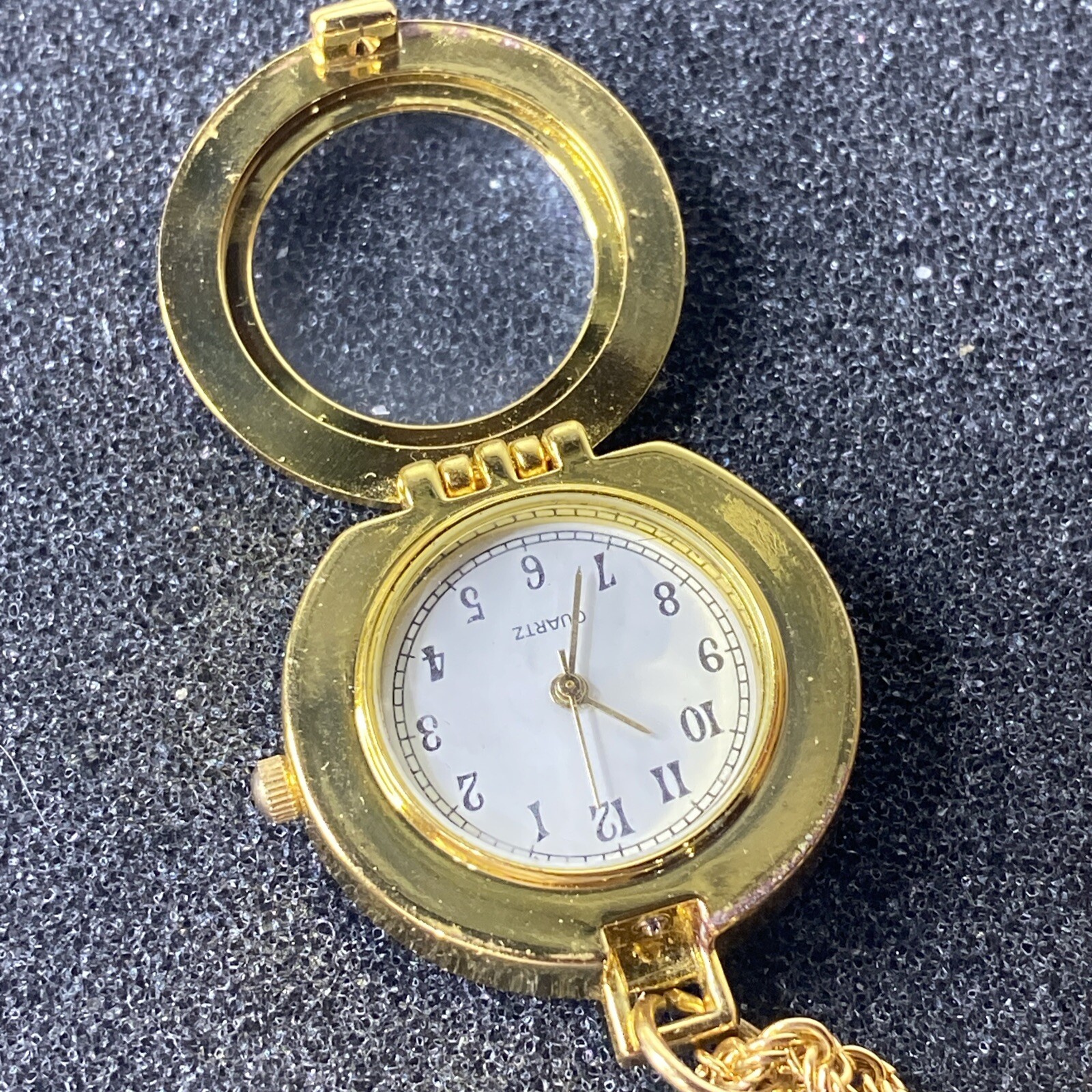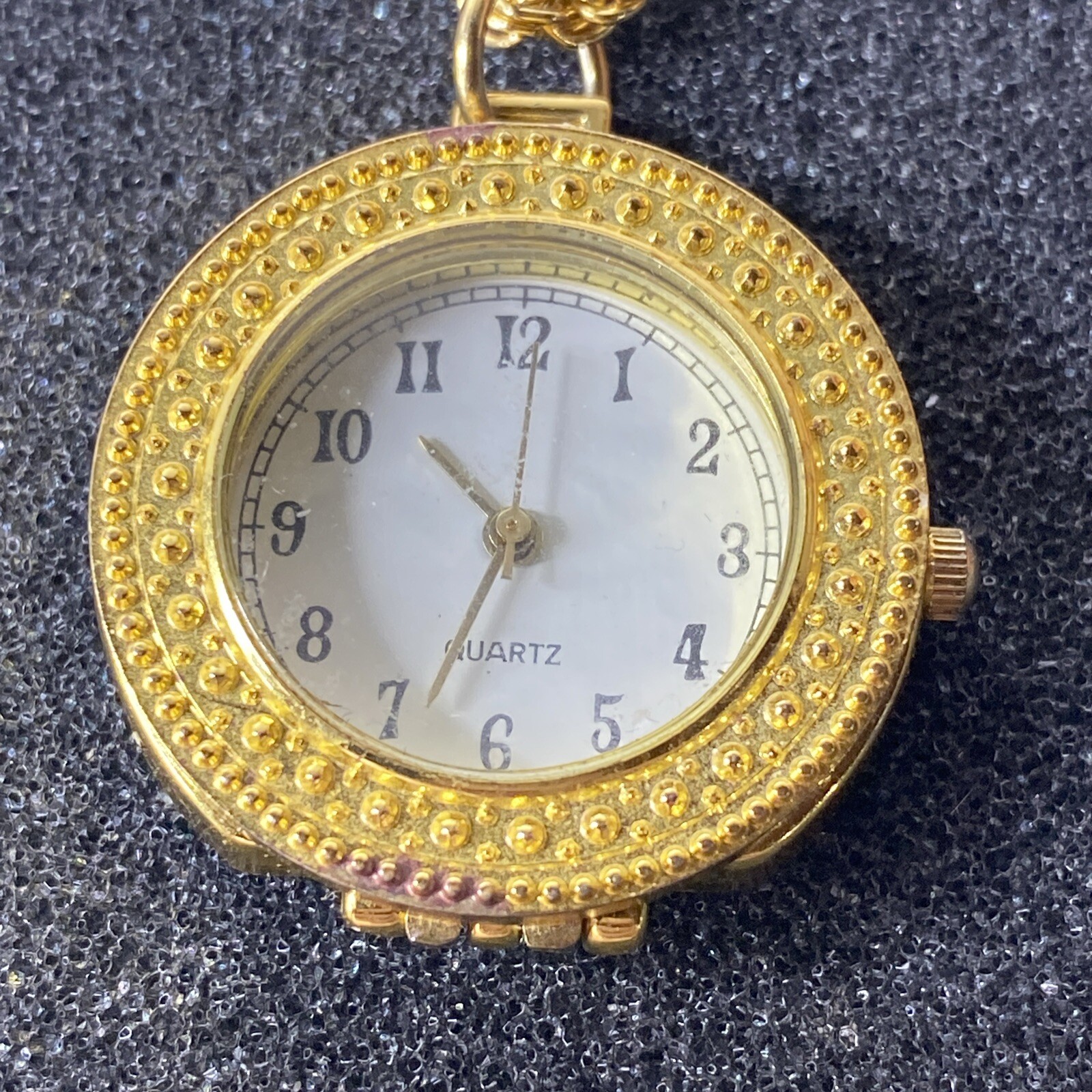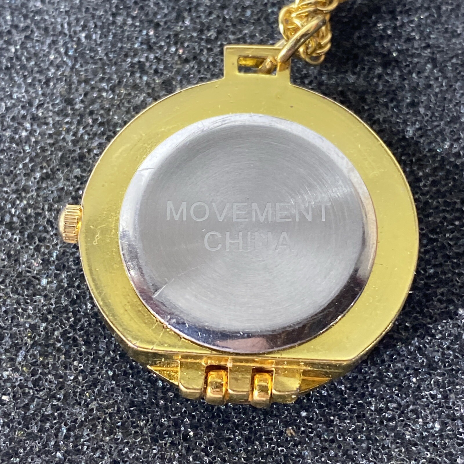 Beautiful Gold Tone Pendant Watch Locket Quartz China MVMT needs Battery 28in. Condition is Pre-owned. Shipped with USPS Ground Advantage.
