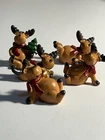 This lot includes 5 small Christmas decorations in the shape of animal deers, featuring a brown color with red ties. The design is abstract and art deco in style, with a character named Abra Kadabra. These decorative pieces are acrylic-made and part of the Animals collection, specifically themed around Animation. Suitable for adults, they would make a unique addition to holiday decor with their festive yet artistic appeal. Cute