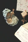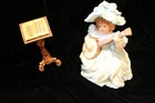 This beautiful 2 pc. set is the second issue from the Muse Series # 2203 A limited edition of 19,500 printed in Taiwan ROC 1992 Hamilton Collection. this little curly red head is dressed in a frilly pastel blue hat and dress seated on her little bench and is playing her little banjo, She comes with her own little music stand and certificate of authenticity. Maude Humphrey was the Mother of the famous actor Humphrey Bogart and it was said that she used him when he was a very young child to model some of the cloths for her dolls. This would be a great addition to any collection.