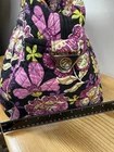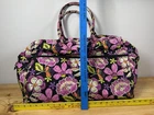 The Beautiful Vera Bradley Floral Weekender Duffel Bag is a stylish and functional travel accessory for women. Featuring a vibrant floral pattern in a rectangle shape, this large duffle bag has a zip closure and double multicolor handles for easy carrying. Made from cotton knit fabric with a quilted finish, it includes interior pockets for organization and a detachable strap for versatility. Perfect for weekend getaways, this bag combines fashion and functionality with the trusted Vera Bradley brand.