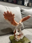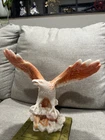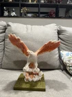 This exquisite sculpture statue depicts a vintage eagle spreading its wings in stunning alabaster resin. Crafted by skilled artisans, this handmade piece is a magnificent addition to any collection of bird-themed collectibles. The intricate details of the eagle's feathers and the lifelike quality of the statue make it a true marvel. The statue is perfect for display in any room of your home, whether you're a collector or simply appreciate beautiful decor. The eagle's majestic presence is sure to command attention and admiration. Add this unique piece to your collection today and enjoy its beauty for years to come. Look a LG the pictures and ask questions before making your purchase