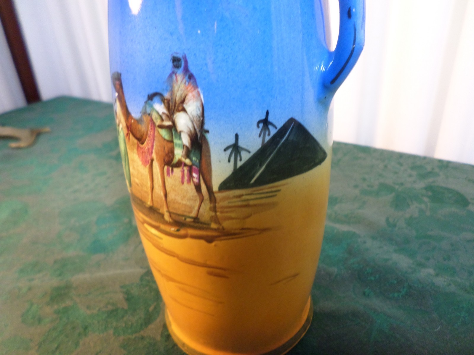 Number in Pack: 1 Style: Egyptian Theme: Double Handled Brand: Unbranded Color: Multicolor Finish: Glossy Handmade: No Type: Vase Shape: Round Occasion: All Occasions Antique: Yes Original/Reproduction: Original California Prop 65 Warning: N/A UPC: N/A Pattern: Camel Size: Medium Material: Ceramic Signed: No gtin13: N/A Department: Adults Item Height: 8 3/4"