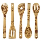 5 Pieces Utensil Sets,Great Gift Product Description Our bamboo cooking utensils don't absorb moisture, they are very hard to stain,they'll generally won't pick up the colors of the food,even like tomato sauces. They are perfect for gifts or you can also gift them as an add-on to a bridal shower. It looks super cute on your kitchen and they’re not just for show,you can actually use them as you any other wooden spoon utensil that you have at home. Take it when you visit your old friend,be present to your parents,it’s best choice for gift when celebration. FSC/FDA Approved, 100% biodegradable and recyclable, Eco-Friendly, Food Grade Natural Lacquer For Added Protection, not color stained, lightweight and comfortable handle for stress free cooking! warm tips: Soak them in olive oil and let them dry for about 2 days before used them. The oil keeps them from staining and absorbing sauces and these will last a lot longer if they are oiled before use. CARE INSTRUCTIONS: This product is not suitable for the dishwasher. To clean, simply wash in warm, soapy water and towel dry. Do not allow bamboo products to soak in water. Never place your wooden utensils in the dishwasher. Package included: 1*solid spoon 1*slotted spoon 1*rounded folk 1*slotted spatula 1*corner spoon GIFT OR DECORATION:Used for your family reunion bake-off,personalized Bake Off spoon.Hostess Gift,House Warming Gift,Mother’s Day Gift,Birthdays,Stocking Stuffers...To anyone who are Kitchen Lovers & Foodies! EASY TO CLEAN AND EASY TO CARE FOR - and safe for non-scratch cookware. Gently hand wash right after use. Do not put in dishwasher VERSATILE USAGE: Add a unique and stylish touch to your home and kitchen with the modern bamboo look, you can use these utensils for high heat sauteing, baking, mixing, flipping, and of course serving your masterpieces literally hundreds of uses in your home and kitchen! Also great for custom art projects for couples! KITCHEN COOKING UTENSILS:Solid spoon,rounded folk,slotted spoon,slotted spatula.Experience artisan-styled craftsmanship with modern rustic appeal when cooking using our kitchen cooking sets. GOOD QUALITY:bamboo utensils are thick, strong and sturdy so it won’t slip out of your hands even stirring the heartiest of meals. The light weight yet superior strength of our bamboo means you don't compromise your recipes with cheap, flimsy cooking alternatives
