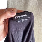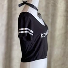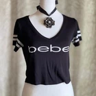 Bebe Oversized Cropped T-Shirt Description: black cropped stretchy tshirt with white printed logo, sleeve stripes, and the number 1 on the back by Bebe in US women’s size S. 94% rayon 6% spandex. She’s giving retro sporty y2k preppy grunge girl 🖤 Condition: good condition. Some wear of fabric throughout. Pilling on the sides of the shirt, and cracking in the white printed graphics. Lay flat measurements: - pit to pit: 16 inches - shoulder to shoulder: 14 inches - waist: 15 inches - shoulder to hem: 16.5 inches - sleeve length: 6 inches Mannequin measurements: - bust: 32 inches - hips: 24.5 inches - waist: 34 inches