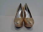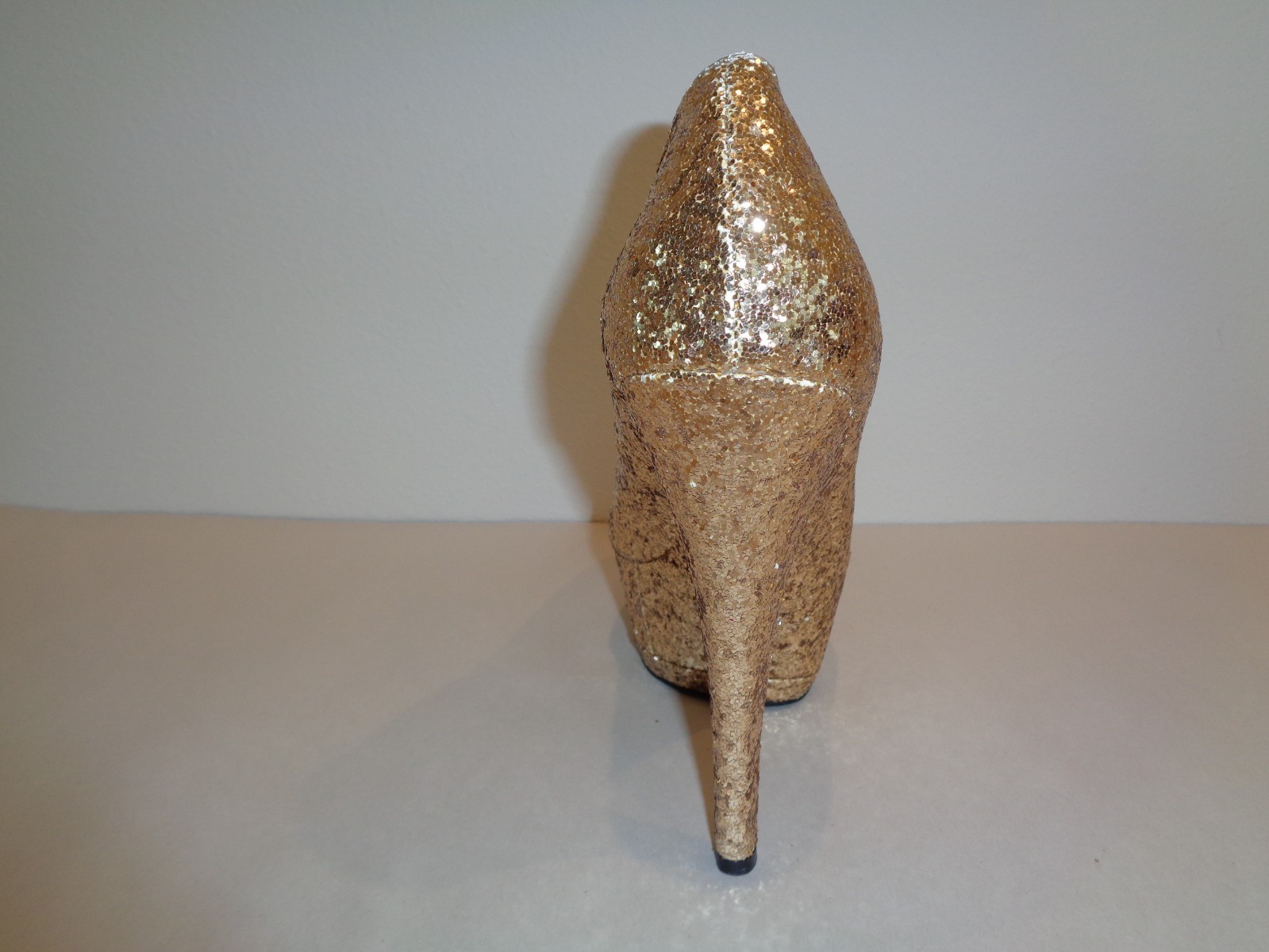 Bebe Size 8.5 M TRISTAN Gold Glitter Platform Heels Pumps New Womens Shoes -Style: TRISTAN, T2105B -Color: Gold -All m an made materials -Heel height approximately 6 inches -Platform height approximately 1.75 inches
