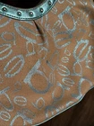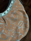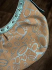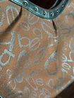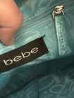 Elevate your style with this stunning Bebe shoulder bag. The exterior is made of high-quality manmade material in a beautiful tan color, with blue accents that add a pop of color to any outfit. The bag is studded with unique accents that showcase your personal style. Perfect for a night out or a day at the office, this bag is a must-have for any fashion-forward woman. The wooden-like handle adds a touch of elegance and comfort, making this bag perfect for all-day wear.