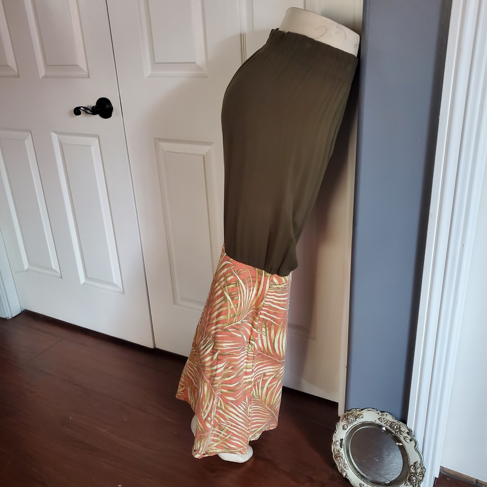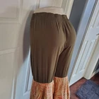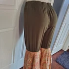 Stylish and comfortable, these olive and pink wide-leg pants are perfect for any occasion. The unique color combination adds a touch of elegance to your wardrobe. Elastic waist, High-waisted, Pull-on style. They are in very good condition. Please see pictures for details and let me know if you have any questions I ship the next business day