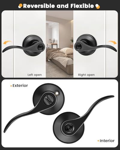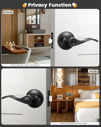 30 Days Return Policy Fast Delivery Trusted seller Bed Bath Door Levers Wave/Drop Handles in Matte Black Interior Privacy Door Locks 4 Pack Product Description Privacy door levers.No key.Thumb-turn button interior for privacy PRIVACY FUNCTION-- Lock from inside with a turn-button for privacy, unlock from outside in emergency with a screwdriver, coin or like object. No key needed. No worry about locked insided by accident. Perfect for bedroom, bathroom, other interior rooms w privacy required. TRADITIONAL DESIGN--Classic drop style lever design ensures comfortable holding and safe operation. Complement both conventional and modern style doors EASY INSTALLATION--All accessories included(Latch,strike plate,screws). Can be installed in minutes with a screwdriver. Refresh your house by yourself with a matte black finished lockset . FULLY REVERSIBLE--Can be installed on both right-handed and left-handed doors. For both commercial and residential applications STANDARD SIZE--Fits all doors 1-3/8" to 1-3/4" in thickness, adjustable latch fits any 2-3/8" or 2-3/4" backset. Conveinet for replacing the old lock. Shipping Returns Payment Shipping Shipping is FREE to all addresses other than APO/PO boxes in the lower 48 states. All our stock ships from US-based warehouses. Shipped via USPS or UPS (depending on location and package weight) Unless stated otherwise, all orders will ship within 24-72 hours of your payment being processed. Check our feedback to see the great reviews of FAST shipping we offer. Returns As our valued customer, we will do our best to make sure the product you receive arrives to you on time and as expected. If you are not satisfied with your purchase, please contact us within 30 days of receiving your order to process a return. Payment We currently accept payment via eBay managed payments only. Once payment is cleared, we will dispatch your shipment within 1-3 business days. Please refer to the "Shipping" tab for more information regarding shipping speed to your destination.
