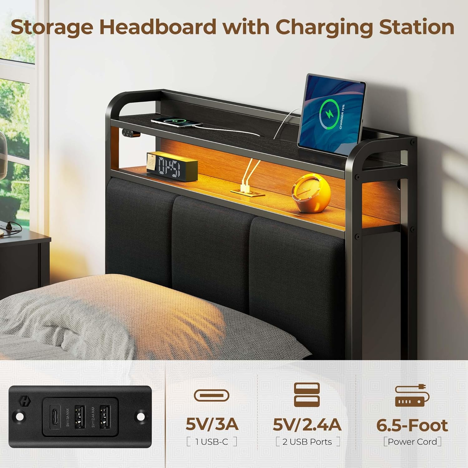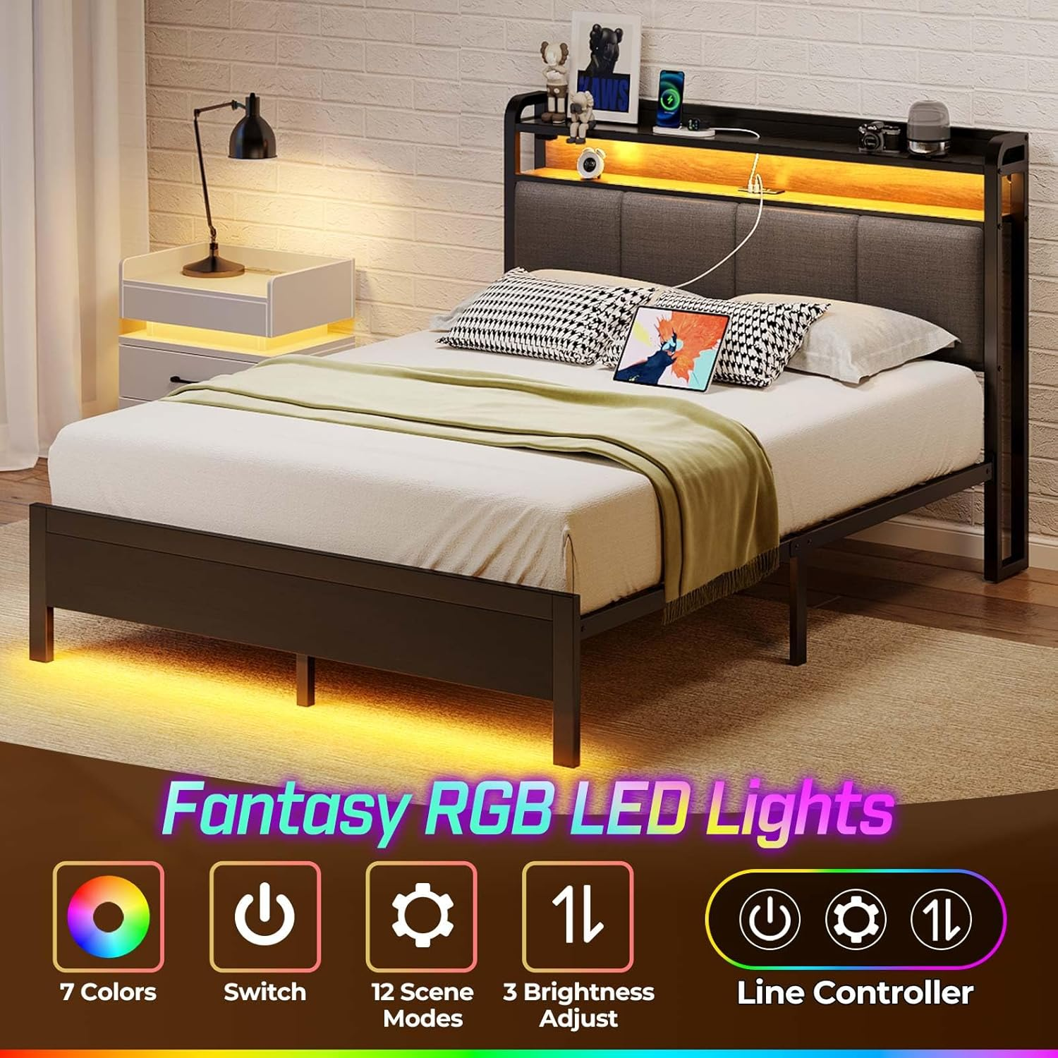 Store New Arrivals Add to Favorite View Feedback Contact Bed Frame Twin Size with Charging Station and LED Lights, Upholstered Headboard Description Item model number hq-chj008-08 Style No Drawer Headboard Material Linen Number of pieces 1 Compatible With Mattress Size Twin Assembly Required Yes Batteries required No Product Dimensions 82.3"L x 39.4"W x 43.3"H Material Linen Form Factor Rectangular Bed Frame Included Components Headboard Fabric Type Metal Assembly Instructions Description Assembly required. The bed frame comes with a bolt-free quick-lock assembly system for easy setup. Ground To Item Distance 10.4 Inches Special Feature LED Lights, No Box Spring Needed, USB Port Item Weight 58 pounds Color Dark Grey Finish Type Brushed Furniture Finish Linen Fabric Storage Options Headboard Shelves, Under-bed Storage Finish types Brushed Product Care Instructions Wipe with Damp Cloth Size Twin Metal Bed Frame with RGB LED Light: This rolanstar bed frame supports the headboard and footboard RGB LED light. The light supports 12 scene modes, 3 speed levels adjustment, and 3 brightness modes. The controller is installed on the headboard, convenient to change the light when you are lying on the bed Headboard with Charging Station: 2 USB and 1 USB C power strip was built into this bed frame headboard. No worry about the low battery, this charging station is convenient to charge your tablet, phone, or other mobile devices Multi-Function Storage Space: The headboard with 2 tier storage shelves could easily keep small items, like phones, glasses, and books within reach. The under-bed storage space is easy to collect luggage, shoe cases, and some storage boxes and the sweeping robot can easily pass through and keep your bedroom clean and tidy Upholstered Design Modern Bed: Classical neutral-toned linen fabric upholstery, which is skin-friendly, breathable, and wear-resistant, adds sophisticated style to any bedroom. This upholstered bed frame is not only stylish but functional as well, perfect for modern bedrooms Stable Structure & Easy to Assemble: The solid stainless steel frame inside ensures durability, and stability. Meanwhile, the design of this framework provides a noise-free environment. The twin-size bed could load up to 900 Lbs. The slats which are spaced 5.8in are fixed by a bolt-free quick-lock assembly system, that is more stable and saves you time and energy (frame made of FSC-Certified wood) Product description ENJOY THE FANTASY BEDTIM 1 Functional Headboard 2 Control System 3 Uphostered Line Fabric 4 Easy to Assemble 5 Under-Bed Storage Space SPECIFICATIONS Size Twin / Full / Queen / King Material Solid Steel Frame & Upholstered with Linen Fabric Component Contains Package: Bed Frame / Headboard / Light Strips / Accessory Bag / Assembly Tool / Instructions Assembly Required Yes & Easy Box Spring Required No Weight Capacity TWIN - 900 Lbs Weight Capacity FULL / QUEEN - 1200 Lbs Weight Capacity KING - 1200 Lbs Product Dimensions TWIN 94.8"L*39.4W*45.2"H Product Dimensions FULL 94.8"L*54.4W*45.2"H Product Dimensions QUEEN 100.3"L*60.8W*45.2"H Product Dimensions KING 87.3"L*76.4"W*43.3"H 1 TWIN SIZE 2 FULL SIZE 3 QUEEN SIZE 4 KING SIZE More Other High-quality Options Add to Cart Add to Cart Add to Cart Add to Cart Add to Cart Add to Cart Add to Cart Customer Reviews 4.7 out of 5 stars 3,293 4.6 out of 5 stars 1,024 4.6 out of 5 stars 595 4.6 out of 5 stars 1,955 4.3 out of 5 stars 728 4.6 out of 5 stars 1,684 4.4 out of 5 stars 80 Price $44.99 $ 44 . 99 $122.39 $ 122 . 39 $144.49 $ 144 . 49 $176.97 $ 176 . 97 $169.14 $ 169 . 14 $268.78 $ 268 . 78 $109.99 $ 109 . 99 Special Features Bamboo Charcoal Memory Foam Charging Station & LED Light Charging Station & LED Light Charging Station & LED Light Charging Station & LED Light Charging Station & LED Light Bamboo Charcoal Memory Foam Mattress fits the bed frame All Size All Size All Size All Size All Size All Size All Size LED Light NO YES YES YES YES YES NO Charging Station NO 2 USB Ports & 1 Type C 2 USB Ports & 1 Type C 2 USB Ports & 1 Type C 2 USB Ports 2 USB Ports & 1 Type C NO Number of Drawers NO NO 1 4 NO 4 NO What size mattress fits this bed frame? This frame works with most standard 6 to 10 inch mattresses. For the perfect fit, we recommend a 10 inch mattress. Does it require a box spring? No, this bed frame does not require a box spring. ABOUT US We offer the best prices around on high quality products. Our E-store includes media such as books, movies, music and games while offering electronics, toys, sporting apparel, clothing, tools, general home, garden items and more. SHIPPING We are always working hard to ensure your package arrives as soon as possible. Please understand that some factors like weather, high postal traffic, and the performance of shipping companies are outside of our control. We offer free shipping to the lower 48 states and ship within 2 business days of payment, usually sooner. We do not accept P.O. Boxes. Please provide a physical address. For shipping outside of the continental USA, we only use eBay's Global Shipping Program.The item is shipped to KY and then sent to the rest of the world. International customers are responsible for all duties and taxes. Continue to check out in order to calculate costs for shipping the item to your country. Messages regarding eBay's Global Shipping Program MUST be directed at eBay EXCLUSIVELY. RETURNS We offer a 30-Day Return Policy on items which you are not completely satisfied with. You have the option for a full-refund or an exchange of the item. No returns are available on items shipped outside of the USA. PAYMENT We accept PayPal. CONTACT US This page content is yet to come Please ad us to your favorite seller and visit again later Thank You CUSTOMER SATISFACTION We try our very best to make sure every customer is completely satisfied. If there's a problem, message us! We're happy to help. WE ACCEPT Copyright © 2021 AutoDS. | All Rights Reserved