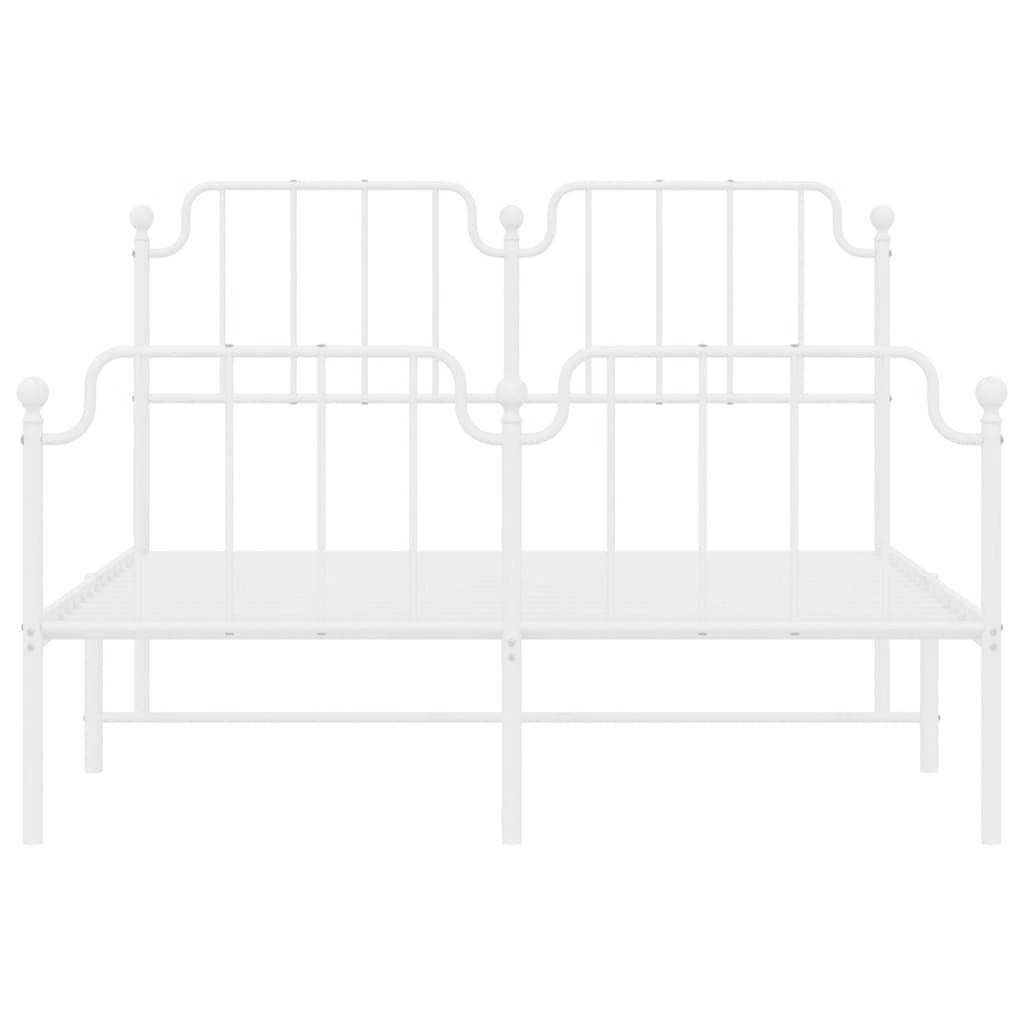 Size: 53.1 x 74.8 in This White Metal Bed Frame with Footboard gives a sleek, modern vibe to any bedroom, blending style with practicality. Made from strong powder-coated steel, its lovely finish not only looks great but also promises long-lasting use and easy care. Durable Frame: Made of high-quality powder-coated steel, this bed frame easily supports up to two adults, making it perfect for couples or guest rooms. Loads of Storage: With a smart design that maximizes space, the bed frame offers a good amount of under-bed storage to keep your bedroom neat. Modern Aesthetic: The smooth, white finish and minimalist style create a fresh look that pairs with all kinds of interior decor, making it versatile for any room. Breathable Material: The materials used allow for airflow to keep your sleeping surface fresh and comfortable. Easy Assembly: This bed frame comes with clear instructions and can be put together with minimal tools, making it easy for two people to set up quickly. Color: White Shape: Rectangular Material: Metal Steel Finish: Powder-Coated Indoor/Outdoor: Indoor Only Cover Included: No Room: Bedroom Capacity: Double (53.1 x 74.8 in) Maximum Number of People: 2 Dimensions: 55.9 x 77.2 x 40.2 in (W x L x H) Surface Height: 40.2 in Leg Height: 11.8 in Weight: 45.75 lbs Swings: No Delivery Contains: Bed frame Assembly Required: Yes Recommended Number of People for Assembly: 2