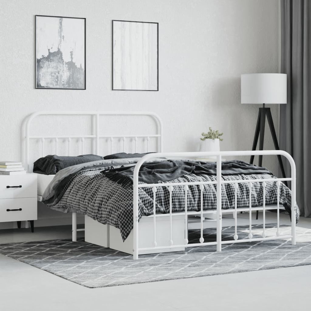 Size: 53.1x74.8 in This white metal bed frame is designed for comfort and style, looking fab in any modern bedroom or guest room. Its sleek lines and smooth finish enhance your room's vibe, giving you a comfy spot to sleep. Stylish Aesthetic: The modern white color and sleek design of this bed frame fit in seamlessly with any bedroom decor, helping you create a calming retreat. Whether it's for a guest room or your own space, its refined look will boost the overall vibe. Robust Build: Made from heavy-duty powder-coated steel, this frame gives solid support for up to two people, ensuring a comfy night's sleep without sagging. The strong materials mean it's built to last, making it perfect for everyday use. Convenient Height: With a height of 10.2 in, this bed frame offers plenty of clearance for under-bed storage, helping you use your space better. You can hide away linens or seasonal clothes easily and conveniently. Easy to Clean: The smooth surface of the powder-coated finish makes cleaning a breeze, letting you keep it looking sharp without much fuss. Just wipe it down with a damp cloth to keep it fresh. Simple Assembly: This bed frame doesn't require much work to put together, making it great for anyone wanting a quick setup. With just a screwdriver and the ability to follow the instructions, you'll be ready to use it in no time. Color: White Shape: Rectangular Material: Metal Steel Finish: Powder-Coated Indoor/Outdoor: Indoor Only Cover Included: No Room: Bedroom Capacity: 2 Maximum Number of People: 2 Dimensions: 55.9 x 77.2 x 39.4 in (W x L x H) Leg Height: 10.2 in Weight: 50.49 lbs Swings: No Delivery Contains: Bed frame Assembly Required: Yes Recommended Number of People for Assembly: 2
