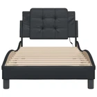 Size: Twin Get a better restful night's sleep from this bed frame with LED lights! It makes a welcoming addition to any bedroom. Durable faux leather: Premium faux leather is a highly durable material. It helps prevent stain, making it easy to clean with a damp cloth. The smooth surface also gives a luxurious look and the beauty of real leather. Plywood slats: The plywood slats provide good weight distribution, ensuring that the mattress stays in place with every twist and turn of your body during sleep. Excellent support: The headboard pillow is stuffed with foam for ultra-soft and optimal comfort, providing you with excellent back support while you're sitting up in bed to read or watch TV. Colorful LED strip: Bring playfulness into darkness with colorful LED lights! The hook and loop fasteners on the back of the headboard cushion can be used to secure the LED lights. Waved side design: The waved look of the bed frame is stylish and sophisticated, adding a modern and elegant touch to your decor, making it the focal point of your bedroom. Good to know: A mattress is not included with this bed. We do offer a various selection of mattresses. You can check our shop for a matching mattress. The product has a USB connector that requires a certified 5V USB power source (not included). Bed frame with headboard: Color: Black Material: Faux leather (75% polyvinylchloride, 5% cotton, 20% polyester), metal, solid pine wood, plywood, engineered wood Overall dimensions: 81.9" x 41.3" x 29.3" (L x W x H) Suitable mattress size: 39.4" x 74.8" (W x L) Twin (mattress not included) Headboard cushion: Color: Black Material: Faux leather (75% polyvinylchloride, 5% cotton, 20% polyester) Filling material: Foam Dimensions: 39.4" x 1.2" x 18.9" (L x W x H) LED strip: Length: 22" Voltage: DC 5 V USB cable length: 59.1" Power cable length: 11.8" IP rating: IP65 With scissor cuttable symbol Range name: Zadar Assembly required: Yes Delivery contains: 1 x Bed frame with headboard 1 x Headboard cushion 1 x LED strip California Proposition 65