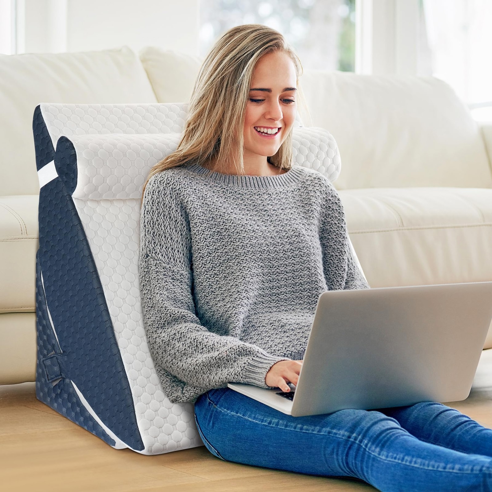 Bed Wedge Pillow for Sleeping, Adjustable Wedge Pillow Set for After Surgery, Elevated Triangle Pillow for Acid Reflux and Back Pain , Post Surgery, Snoring, Back Support Friendly-Design for Back Pain : Our Bed wedge pillow height can be from 7 inches to 12 ing to provide you with more comfortable support. Supportive and elevated post-surgery wedge pillow help you reduce snoring, relieve back, leg pain, acid reflux and breathing issues, improving blood circulation and . Our orthopedic wedge pillow is perfect for after surgery and sleep apnea, providing more comfortable night's sleep for you Bed Wedge Pillow Set for Post Surgery: Our ergonomic wedge pillow is made of high quality foam, comfortable and breathable, skin-friendly fabric, the Wedge Pillow for Sleep is CertiPUR certified in the USA and OEKO-TEX certified, safe and hypoallergenic. Our bed wedge pillow is design supports various uses – from elevated back support for sleeping, reading or working, to a gentle slope for sleep, post-surgery discomfort Removable Machine Washable Pillow Cover: Our bed wedge pillow cover is very comfortable and skin-friendly, and it's thick and durable. The removable cover with a zipper is machine washable for easy maintenance. Wedge pillow set elasticity is very strong and strong and retains its shape after long term use. At the same time, the wedge pillow set hugs the curves of your body and provides excellent support for your neck, back and shoulders Multi-Functional Bed Wedge Pillow Set: Our triangle pillow wedge set is more than just a wedge pillow—it also functions as a bed wedge pillow for headboard. Perfect for daily rest and relaxation, especially during post-surgery recovery. Whether you're lying down or sitting up in bed, reading, working, studying, or watching TV on the sofa, it provides excellent support. It’s also ideal for pregnancy and postpartum comfort Perfect Gift Idea: If you or lover struggles to sleep at night, this wedge pillow for sleeping is a good choice for you, it can help you solve the problem. Our wedge pillow set is able to use it for various body areas like the neck, back, leg, knee, head,shoulder,Provide enough support for all parts of your body to enjoy a comfortable life.