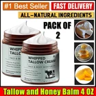Beef Tallow for Skin, 2PCS Tallow and Honey Balm, Beef Tallow for Face, Organic Grass Fed Whipped Beef Tallow with Honey Beeswax, Deeply Moisturizing for Face Body, Unscented Fast Absorption, 4.2 Oz 【Nutrient-Rich Grass Fed Beef Tallow】 Our beef tallow moisturizer is made from grass-fed beef tallow, rich in natural fatty acids and vitamins that deeply nourish your skin, improving elasticity and softness. Enjoy superior nutrients for an exceptional skincare experience. 【Powerful Natural Ingredients】 Our tallow face moisturizer enriched with essential vitamins A, D, E, K, E and Fatty Acids, revitalizes your skin, replenishing its youthfulness and vitality with every application. 【Versatile Skincare Solution】 Whether you need a face moisturizer, body lotion, or deep moisturizing whipped balm, our product does it all. Its multifunctional properties make it a must-have in your skincare routine for exceptional care and hydration. 【Unscented & Fast Absorbing】 Our unscented formula is perfect for sensitive skin, absorbing quickly without leaving a greasy residue. Enjoy a comfortable, non-oily feel after use. 【For Every Skin Type and Everyone】 Whether your skin is oily, dry, or combination, this product adapts to meet your needs. It’s designed for anyone seeking a gentle yet effective solution, delivering noticeable results and providing everyone with healthy, glowing skin. 【Great Choice】 This purely natural tallow face moisturizer is ideal for both men and women, making it a thoughtful gift for friends, family, or your partner. Give the gift of exceptional skincare! Note: This Product is designed to deliver optimal results, offering high-quality performance and satisfaction. Please note that individual experiences and outcomes may vary based on personal use, preferences, and unique circumstances. For best results, we recommend following the provided guidelines and ensuring the product is used as intended. Product result may vary for every individual. NOTE Hello Buyer, Thank you for your interest in our product! Please note that I am a reseller, and your order will be shipped directly from our nearest warehouse to your address. If you have any questions or need assistance, feel free to reach out.
