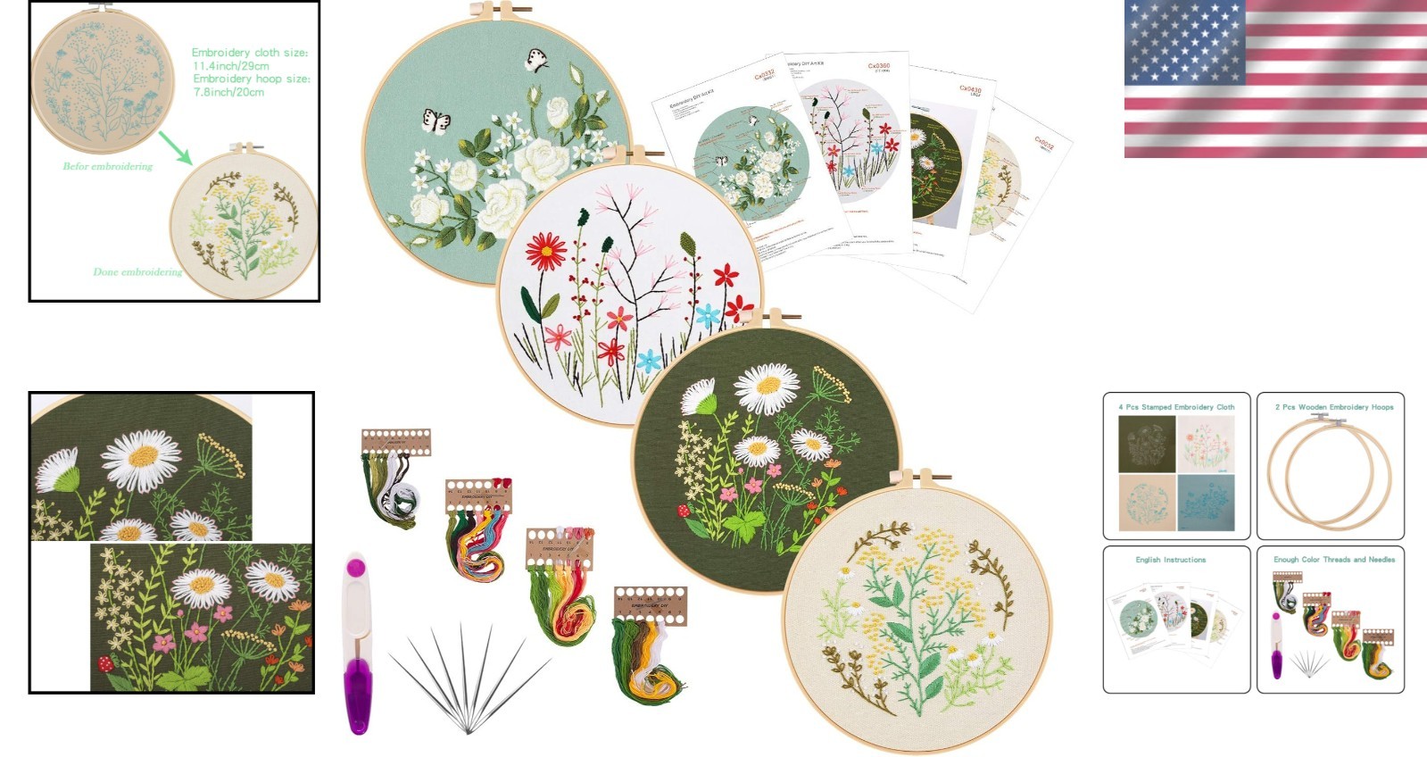 Beginner-Friendly Embroidery Kit with Floral Patterns - Perfect for Adults ‹ › ‹ › ‹ › ‹ › ‹ › ‹ › ‹ › ‹ › ‹ › Beginner-Friendly Embroidery Kit with Floral Patterns Perfect for Adults and Newbies! Features: Comprehensive embroidery kit includes everything you need to get started. Includes 4 pieces of embroidery cloth (12''x12'') with easy-to-follow floral patterns. Two sturdy wooden embroidery hoops (7.8''x7.8'') with adjustment screws for tight fabric control. A pair of scissors and high-quality embroidery needles. A variety of vibrant embroidery threads in assorted colors. Clear, concise English instructions for beginners. Benefits: Perfectly tailored for beginners, allowing you to dive right into the world of embroidery. Beautiful Floral Designs: Create stunning decorations for your home, or add a personal touch to your belongings. Encourages creativity, relaxation, and mindfulness through the art of embroidery. Great for gifting – personalize your embroidery and bring joy to your loved ones. Why Choose Our Embroidery Kit? Are you looking to explore your artistic side or find the perfect gift for a creative soul? This Beginner-Friendly Embroidery Kit is designed to ignite your passion for crafting. Each kit comes complete with everything a beginner needs to create beautiful floral designs with ease, ensuring you can focus on enjoying the process rather than feeling overwhelmed. With clear instructions and beautifully colored patterns, your creative journey will begin effortlessly. Transform your space with your masterpiece or delight someone special with a heartfelt, handmade gift. Embrace the joy of embroidery – order your kit today! Shipping Free & Fast Shipping - We offer free shipping to most of the USA with a normal delivery time of 3-7 days. However, due to the current situation, additional delivery time (up to 3 weeks) may be required for some items. Alternative Carriers - We may use alternative carriers (e.g. USPS, FedEx, UPS, etc.) to ensure your package arrives safely and on time. Due to the use of multiple carriers, we are unable to provide a tracking number automatically. Handling Time - Orders are processed and shipped within 1-2 business days of receiving cleared payment. Shipping Restrictions - Shipping to Alaska, Hawaii, Puerto Rico, Guam, and other US territories may incur shipping charges or delivery restrictions. Please contact us before ordering, or your order can be refunded/cancelled. State Restrictions - There may be restrictions based on your state of purchase. For example, certain items may not be shipped to California due to state regulations. Contact for Tracking Updates - If you require tracking updates or have any concerns about the delivery of your order, please feel free to contact us, and we will be happy to assist you. Return 30-Day Hassle-Free Returns - We want you to be completely satisfied with your purchase. If you are not, you can return the item within 30 days of receiving it for a full refund or exchange. Easy Return Process - To start a return, simply contact us and we will provide you with a prepaid return shipping label and detailed instructions. Restocking Fee - There are no restocking fees for returns. However, the buyer is responsible for return shipping costs if the return is not due to a seller's error. Refund Processing Time - Refunds will be processed within 5 business days of receiving the returned item in its condition. Payment We accept all major credit cards, PayPal, and Apple Pay for your convenience. Your payment information is secure and encrypted to ensure a safe and seamless transaction. Please complete your payment within 3 days of purchase to avoid any delays in shipping. Feedback Your feedback is extremely important to us. We strive to provide the best products and customer service possible. If you are satisfied with your purchase, please take a moment to leave us a positive review. If you have any concerns or issues with your order, please contact us before leaving negative feedback. We are committed to resolving any problems and ensuring your satisfaction. Contact Us If you have any questions or concerns, please feel free to out to our customer support team. You can contact us through the eBay messaging system. We are available Monday to Friday, 9:00 am to 5:00 pm EST, and we will do our best to respond to your inquiry within 24 hours. Buy it now and enjoy a pleasant shopping experience! Unit Quantity: 4 Bundled Items: Scissors,Needles,Color Threads,Embroidery Hoops Format: Embroidery Kit Theme: Floral